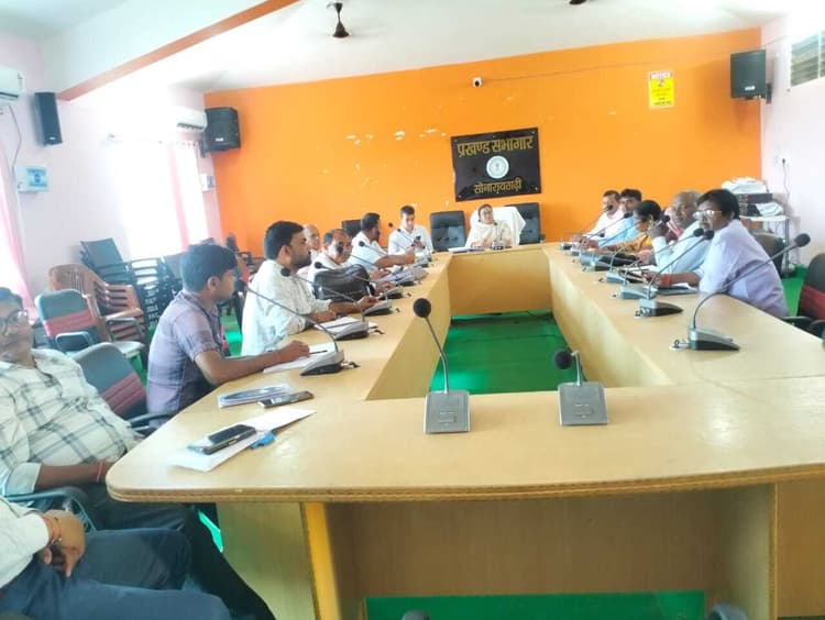 सोनारायठाढ़ी. प्रखंड सभागार में शुक्रवार को बीडीओ नीलम कुमारी ने पेयजल स्वच्छता समिति की एक बैठक की, जिसमें जनप्रतिनिधि व स्वच्छता समिति के सदस्यों ने हिस्सा लिया. इस दौरान बीडीओ ने कहा कि प्रखंड क्षेत्र के जोरोपहरी, ऊपर गड़गड़िया, खेरवा, बलिडीह, बारा, महलबनी गांव में जल्द से जल सहिया का चयन कर उसकी रिपोर्ट प्रखंड कार्यालय में जमा करने, पेयजल एवं स्वच्छता विभाग द्वारा निर्मित जलमीनार को दुरुस्त कर पंचायत को सुपुर्द करने पर चर्चा की गयी. वहीं, मुख्यमंत्री मंईयां सम्मान योजना योजना के लाभुकों का सत्यापन, इस माह में 120 प्रधानमंत्री आवास को पूर्ण करने समेत अन्य मामलों पर बैठक में चर्चा की गयी. मौके पर प्रखंड समन्वयक अभिषेक कुमार, मिथुन साह, बीडब्ल्यूओ भूषण मंडल, पंचायत सचिव हीरामानी मंडल, कौशल कुमार राय, मृत्युंजय कुमार राय, ममता कुमारी, प्रिया स्वेता, जयप्रकाश झा, मुखिया शंकर कुमार मिस्त्री, खुर्शीद अंसारी, जयकांत यादव, स्वच्छता ग्राही संजय कुमार सिंह समेत स्वच्छता विभाग के अन्य कर्मी मौजूद थे.