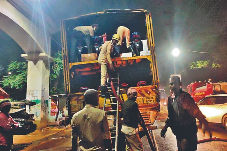 बाइकों से भरे कंटेनर में शॉर्ट सर्किट से लगी आग