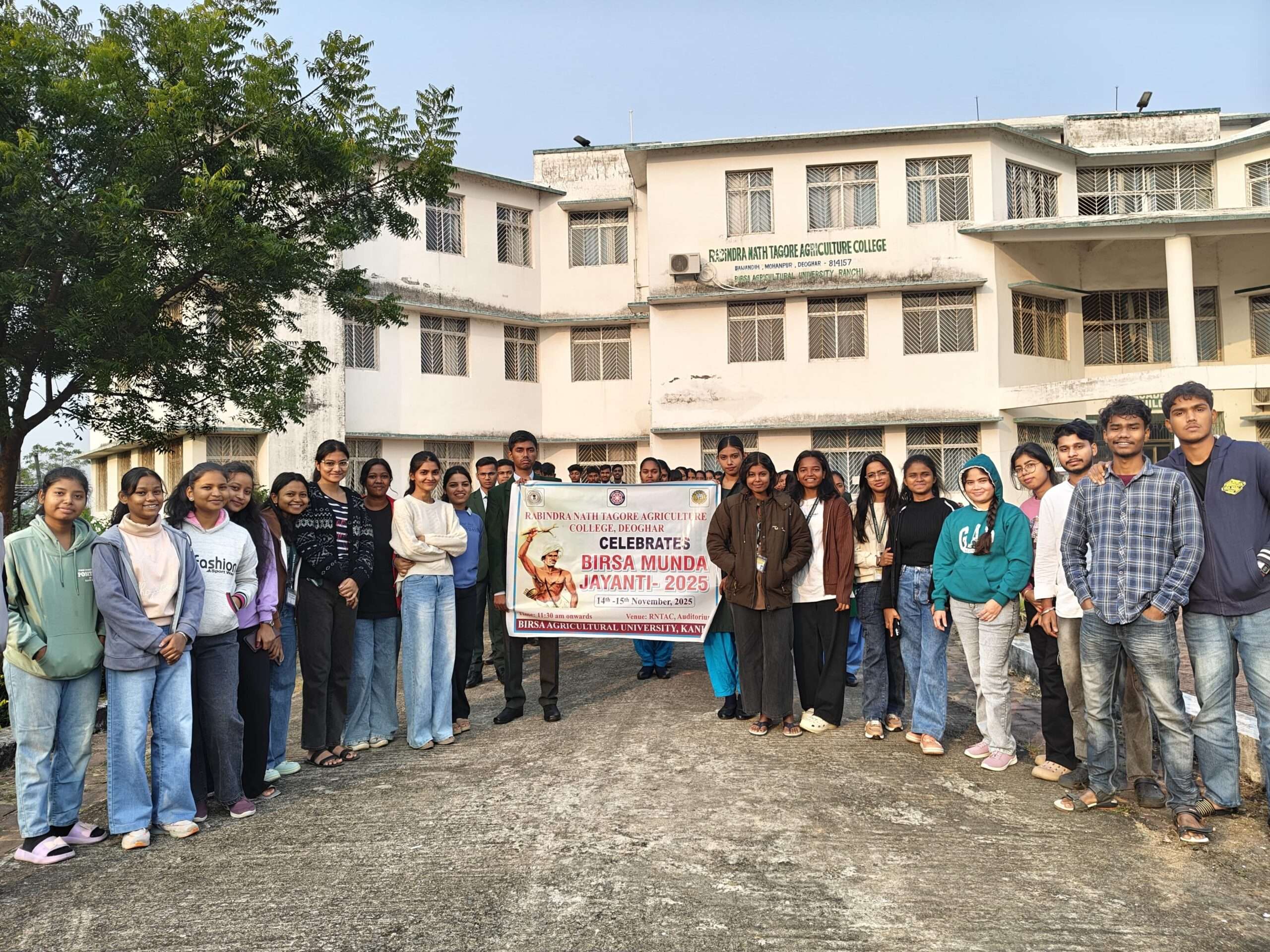 प्रतिनिधि, मोहनपुर. मोहनपुर प्रखंड क्षेत्र के बैजनडीह गांव स्थित रवींद्रनाथ टैगोर कृषि महाविद्यालय में धरती आबा भगवान बिरसा मुंडा की जयंती समारोह पूर्वक मनायी गयी. कॉलेज परिसर में सुबह से ही छात्रों में उत्साह का माहौल रहा. सभी सत्रों के छात्र-छात्राओं की सहभागिता के बीच प्रभारी एसोसिएट डीन डॉ जय प्रकाश ने कार्यक्रम की शुरुआत की. उन्होंने भगवान बिरसा मुंडा के जीवन संघर्ष, उनके जनाधिकार आंदोलन और युवाओं के लिए उनके प्रेरणादायी व्यक्तित्व पर प्रकाश डालते हुए कहा कि बिरसा मुंडा ने समाज की एकता, साहस और संघर्ष का नया मार्ग दिखाया. कार्यक्रम के दौरान छात्रों ने भव्य शोभायात्रा निकाली, जिसमें पारंपरिक नृत्य, बिरसा मुंडा के चित्र और जागरुकता संदेश शामिल थे. कॉलेज परिसर में डिबेट, स्पीच सहित विभिन्न प्रतियोगिताओं का आयोजन किया गया, जिसमें बेहतर प्रदर्शन करने वाले छात्रों को पुरस्कृत किया गया. पूरा आयोजन डॉ अदिति एलिजा की देखरेख में सफलतापूर्वक संपन्न हुआ. मौके पर डॉ सर्वेश कुमार, प्रियंका नंदी, रेमा दास, तारा शंकर, अदिति एलिजा तिर्की, अखिलानंद दुबे, सूरज माली, चमन कुमार, उपासना प्रिया, भूपेंद्र सिंह और सीतेश कुमार उपस्थित थे. कार्यक्रम के अंत में धन्यवाद ज्ञापन के साथ समारोह का समापन हुआ.