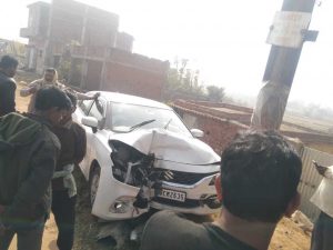 Deoghar News : कार ने बिजली के खंभे में मारा धक्का, महिला घायल