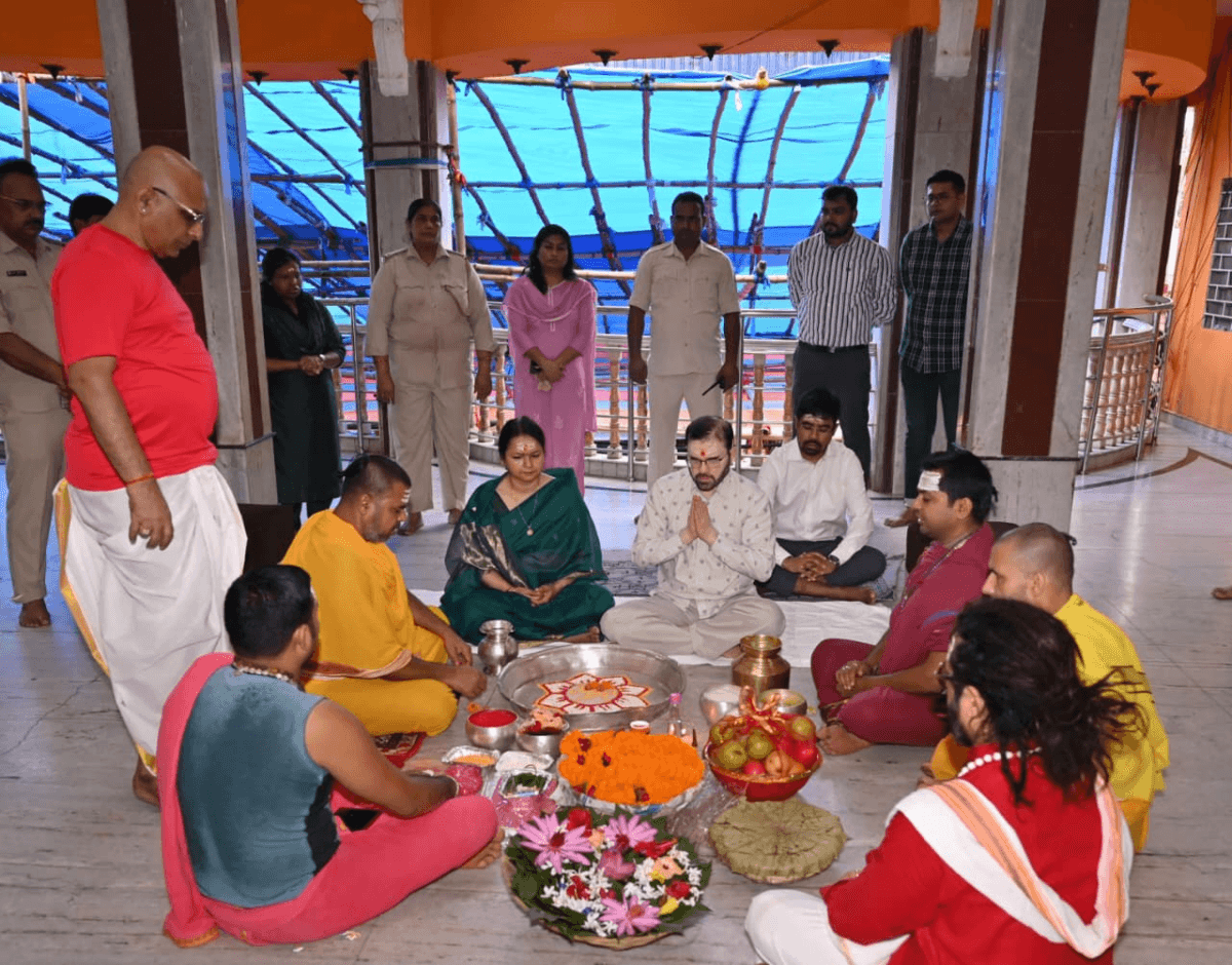 पति संग बाबा धाम में पूजा करती मुख्य सचिव अलका तिवारी