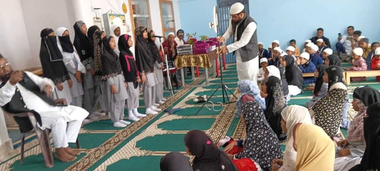 मधुपुर. शहर के चांदमारी स्थित मस्जिद परिसर में मकतब व मदरसा के बच्चों के बीच एक दिवसीय शिक्षा, तरबियती, दिनी, बेदारी इसलाह क्विज कार्यक्रम का आयोजन किया गया. प्रतियोगिता समिति के अध्यक्ष मो. शोएब, मो. इकबाल व सचिव मो. शाहिद की देखरेख में आयोजन किया गया. मदरसा में अध्ययन कर रहे बच्चों ने इस्लामिक क्विज प्रतियोगिता में बढ़-चढ़कर भाग लिया. क्विज प्रतियोगिता में कुरान ए पाक की तिलावत और हदीस एवं इस्लाम धर्म से संबंधित सवाल पूछे गये, जिसमें मदरसा क्यूबा के बच्चों को ग्रुप में बांटा गया. प्रतियोगिता में प्रथम मलिहा शोएब, दूसरे स्थान जास्मिन फारूकी व तीसरे स्थान पर साकिबुल हसन रहे. जबकि नज्म और नात में उम्मे हबीबा ग्रुप ने प्रथम पुरस्कार तंजील अहमद, द्वितीय स्थान मलीहा शोएब, तृतीय पुरस्कार फातिमा ग्रुप ने प्राप्त किया. निर्णायक मंडल में मो. बादशाह, मो. रशीद अंसारी, मुजाहिद अंसारी, मो. तनवीर उल हसन, सैफुल रहमान शामिल थे. वहीं, मदरसा के सफल प्रतिभागियों को तरबियती तालीमी इस्लाह के मौलाना मो. अकरम अल्वी, मो. हफीज शोएब, मो. खुर्शीद आलम, मो. आबिद, मो. शोएब अख्तर की ओर से पुरस्कृत किया गया. मौके पर मो. मुख्तार मो. इरफान, मो. शाहिद, मो. मुमताज़, मो. नसीम अख्तर, नजमुल हुदा, मो. कमरुद्दीन, गुलाम मोहम्मद मुस्तफा, मो. गुड्डू, मो. इफ्तिखार, मो. सोहेल, मो. इमरान, मो. शोएब, मो. राशिदुल हक, मो. तौसीफ जमाल, मो. राजा आदि मौजूद थे.