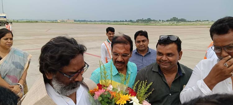देवघर. बुधवार को गोड्डा के महागामा में आपकी योजना आपकी सरकार आपके द्वार कार्यक्रम से लौटने के क्रम में मुख्यमंत्री हेमंत हेलीकॉप्टर से देवघर एयरपोर्ट पहुंचे. देवघर एयरपोर्ट पर महागठबंधन के नेताओं ने उनका स्वागत किया. उसके बाद मुख्यमंत्री श्री सोरेन विशेष विमान से रांची रवाना हो गये. उनके साथ मंत्री दीपिका पांडेय सिंह भी थीं. मौके पर जिला बीस सूत्री उपाध्यक्ष डॉ मुन्नम संजय, कांग्रेस जिलाध्यक्ष प्रो उदय प्रकाश, झामुमो जिलाध्यक्ष संजय शर्मा सहित अन्य झामुमो नेताओं ने मुख्यमंत्री हेमंत सोरेन को पुष्प गुच्छ तथा अंगवस्त्र देकर स्वागत किया. नेताओं ने मंत्री दीपिका सिंह पांडेय का भी स्वागत किया. इस दौरान कांग्रेस जिला महासचिव दिनेश कुमार मंडल, झामुमो नेता सुरेश साह, जीपी धनंजय मंडल, हिंदू धार्मिक न्यास बोर्ड के सदस्य अजय नारायण मिश्रा, सूरज झा, नंदकिशोर दास सहित कई नेता मौजूद थे.