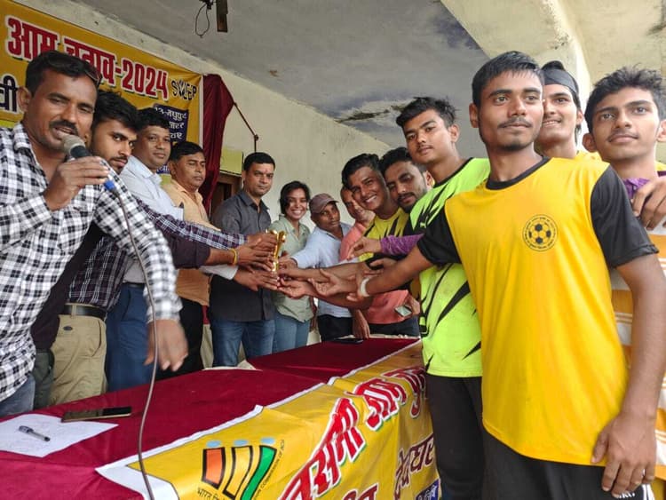 सारठ बाजार . जिला निर्वाचन पदाधिकारी सह उपायुक्त विशाल सागर के निर्देशानुसार सारठ आगामी 2024 विधानसभा चुनाव में फर्स्ट टाइम के युवा मतदाताओं का उत्साह बढ़ाने के लिए कार्यक्रमों का आयोजन किया जा रहा है. इस क्रम में शत प्रतिशत मतदान सुनिश्चित करने के उद्देश्य से स्वीप कार्यक्रम के तहत प्रखंड क्षेत्र के उच्य विद्यालय गोपीबांध परिसर मैदान में फुटबॉल प्रतियोगिता का आयोजन किया. फुटबॉल प्रतियोगिता में शामिल सभी टीमों ने मतदान के प्रति अपने परिजनों को जागरूक करने को लेकर शपथ ली. युवा मतदाताओं को चुनाव में मतदान करने के लिए बढ़ चढ़कर हिस्सा लेने के लिए जागरूक किया. प्रतियोगिता में शामिल सभी टीमों ने अपने युवा साथियों के साथ-साथ अपने परिजनों को मतदान के प्रति जागरूक करने की शपथ सी. बताया कि कार्यक्रम के आयोजन का मुख्य उद्देश्य लोगों को अपने 20 नवंबर को मतदान के प्रति जागरुक करना और निष्पक्ष होकर मतदान करने के लिए प्रेरित करना है. वहीं फुटबॉल प्रतियोगिता केचुआबांक और जमुवासोल टीम के बीच खेला गया, जिसमें केचुवाबाक टीम एक गोल से विजय रहा. पदाधिकारी ने दोनों टीमों के खिलाड़ियों को सम्मानित किया. मौके पर स्वीप के विनय कुमार, पूजा कुमारी, ब्यास देव, पंकज प्रकाश, बीपीओ डेविड गुड़िया, विक्की आनंद, दिलीप झा खेल संयोजक अब्दुल सलाम ने किया. मैच में रेफरी की भूमिका भीम किस्कू, संदीप हेंब्रम और राम प्रसाद किस्कू ने निभाया.