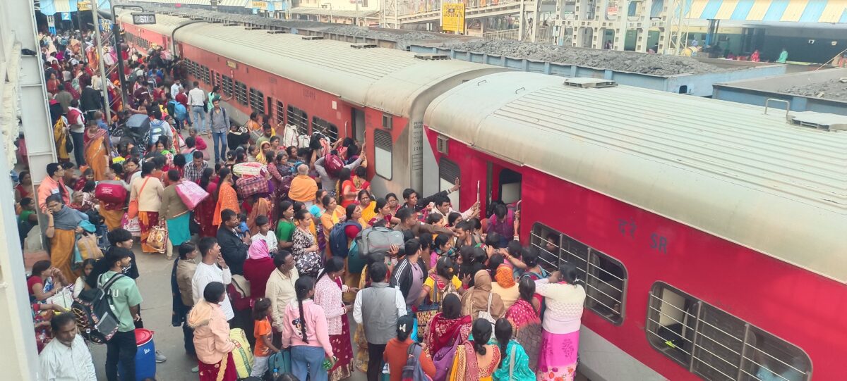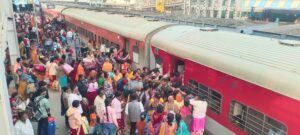 Deoghar News : कथा के समापन के बाद जसीडीह स्टेशन में खचाखच भीड़, प्लेटफॉर्म पर की गयी बैरिकेडिंग