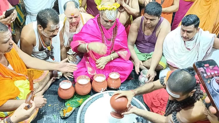 संवाददाता, देवघर : भाद्रपद मास कृष्ण पक्ष नवमी तिथि पर रविवार को बाबा मंदिर में दही हांडी उत्सव मनाया गया. इस दौरान रविवार को बाबा बैद्यनाथ की विशेष पूजा अर्चना कर दही चढ़ाया गया. वर्षों से चली आ रही इस परंपरा का आज भी निर्वहन किया जा रहा है. सरदार पंडा श्रीश्री गुलाब नंद ओझा ने शाम को विधि विधान पूर्वक बाबा की पूजा की. वहीं बाबा मंदिर स्टेट पुरोहित श्रीनाथ पंडित ने पूजा करायी. इसके बाद सरदार पंडा ने बाबा पर दही अर्पित किया. साथ ही बाबा मंदिर परिसर स्थित सभी 22 मंदिरों में बारी-बारी से दही अर्पित किये गये. इसके बाबा मंदिर का पट खुला रहा, वहीं दही हांडी अर्पित करने के बाद शाम में बाबा की श्रृंगार पूजा की गयी तथा पट बंद कर दिया गया. बाबा मंदिर में दही हांडी का पर्व मनाने की पुरानी परंपरा है, जो जन्माष्टमी के दूसरे दिन मनाया जाता है. मौके पर पंडा धर्मरक्षिणी सभा महामंत्री निर्मल झा, उपाध्यक्ष संजय मिश्रा, भक्तिनाथ फलाहारी, सुमन झा, आदित्य फलाहारी, मल्लु झा समेत अन्य थे.