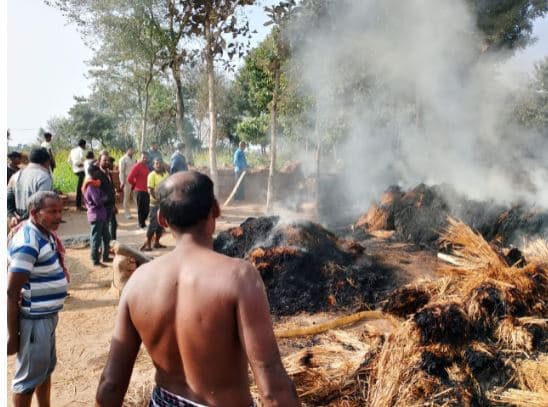 सारवां. थाना क्षेत्र की कुशमाहा पंचायत अंतर्गत डंगाल कुरेवा गांव के खलिहान में अचानक आग लगने से पुआल सहित धान जल कर राख हो गया. वहीं, घटना की जानकारी पाकर बीडीओ रजनीश कुमार मौके पर पहुंचे व ग्रामीणों से मोटर पंप लगवाकर पर आग पर काबू पाया गया. वहीं, बीडीओ ने फायर ब्रिगेड को इसकी सूचना दी. देर से पहुंचे अग्निशामक कर्मियों द्वारा शेष आग को बुझाया गया. पीड़ित किसान जितेंद्र मंडल ने बताया कि आग लगने के कारण का पता नहीं चला. अचानक आग की लपटें उठने लगी और देखते ही देखते पूरे खलिहान में पहुंच गयी, जिससे आठ हजार पुआल और आठ क्विंटल धान जलकर राख हो गया. पीड़ित ने प्रशासन से गुहार लगायी है. आग बुझाने में प्रभारी बीपीआरओ दिलीप कुमार राय, समाजसेवी दिलीप सिंह, सुरेश मंडल, मैनेजर मंडल, दीपक झा, हीरालाल मंडल, बासकी मंडल आदि लगे थे. ——————- सारवां की कुशमाहा पंचायत के डंगाल कुरेवा गांव की घटना