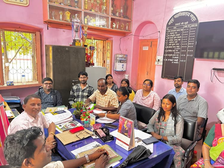 मधुपुर . महाविद्यालय में शनिवार को राष्ट्रीय मूल्यांकन एवं प्रत्यायन परिषद ( एनएएसी ) कमेटी की बैठक प्रभारी प्राचार्य डा. रत्नाकर भारती के अध्यक्षता में हुईॉ, जिसमें आईक्यूएसी समन्वयक डा अनिता गुआ हेम्ब्रम ने पूर्व में हुई प्रगति संबंधी कार्यो से अवगत कराया. डा अनिता ने बताया कि विद्यार्थियों की सुविधा के लिए विभिन्न स्तरों पर कई विकास कार्य हुए हैं. 24 घंटे बिजली की सुविधा के लिए सौर ऊर्जा की सुविधा उपलब्ध करायी गयी है,. बारिश के दौरान आकाशीय बिजली से सुरक्षा हेतु सुरक्षा के लिए महाविद्यालय में चार तड़ित चालक लगाये गये हैं. बारिश के पानी का संरक्षण के लिए दो जल संचयन का निर्माण किया गया है. पुस्तकालय में विद्यार्थियों के लिए नयी किताबें उपलब्ध करायी गयी हैं. विज्ञान के छात्र-छात्राओं के लिए प्रयोगशाला की सुविधा शुरू की गयी है, साथ ही महाविद्यालय में सभी विषयों की पढ़ाई नियमित रूप से आयोजित हो रही है. मौके पर प्रभारी प्राचार्य ने अभिभावकों के लिए अपील जारी की. कहा कि वह अपने बच्चों को नियमित रूप से महाविद्यालय भेजें. बैठक में कई महत्वपूर्ण निर्णय लिये गये, जिसमें एसएसआर पर कार्य करने के लिए टीम बनायी गयी. इस दौरान महाविद्यालय के पूर्ववर्ती छात्र-छात्राओं का संगठन एएलयूएमएलआई का रजिस्ट्रेशन करने का निर्णय लिया गया. बैठक में प्रेम रोशनी एक्का, डा. उत्तम कुमार शुक्ला, रंजीत कुमार प्रसाद, होरेन हांसदा आदि मौजूद थे.
