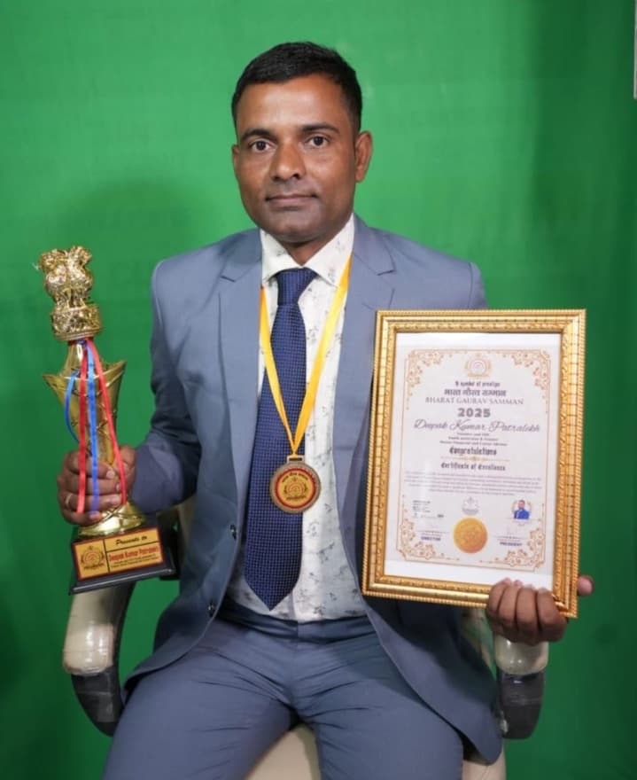 सारवां. गौरव सम्मान शृंखला नयी दिल्ली में आयोजित भारत गौरव सम्मान-2025 में विभिन्न क्षेत्रों के लोगों को उनके कार्य व कला के क्षेत्र प्रदर्शन के आधार पर यह सम्मान दिया गया. इस अवसर पर युवा कार्यक्रम व रोजगार सेक्टर में उल्लेखनीय योगदान के लिए देवघर के सारवां प्रखंड के कुशमाहा ग्राम निवासी दीपक पत्रलेख को संस्कृति विभाग नयी दिल्ली की संस्था की ओर से भारत गौरव सम्मान एक सादे समारोह में दिया गया. दीपक पत्रलेख 2009 से लगातार सामाजिक सेवा, युवा कार्यक्रम और रोजगार के कार्यक्रम अपने क्षेत्र में करते आ रहे हैं. अब उनकी कंपनी अपना साथी बिजनेस सर्विसेज प्राइवेट लिमिटेड इस कार्य को झारखंड, बिहार व बंगाल में सफलता पूर्वक आयोजित कर रहा है. उनकी इस सफलता पर पूर्व कृषि मंत्री बादल पत्रलेख, चार्टड अकाउंटेट विकास सहित जिले के शिक्षाविदों ने दीपक को बधाई दी. यह सम्मान देश की प्रतिभाशाली, व्यवसायिक, संस्था, समाजसेवक व कई क्षेत्र में निपुण लोगों को दिया जाता है. इस अवसर पर उनकी पूरी टीम के साथ गांव के गणमान्य लोग उपस्थित थे. इसकी जानकारी दीपक ने दी.