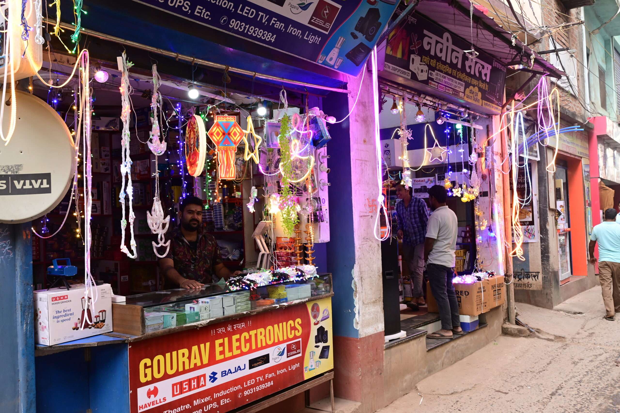 संवाददाता, देवघर : दीपावली को लेकर देवघर के बाजार में रंग-बिरंगी लाइटों की बिक्री हो रही है. इस बार बाजार में ‘मेक इन इंडिया’ लाइटों का जलवा है. दुकानों में डायमंड कट झालर, हाइ ब्राइटनेस लाइट, दीप लाइट, पत्ता लाइट, स्टार लाइट, रॉक लाइट, मिसाइल लाइट और दीपक लाइट जैसे कई नये कलेक्शन मंगवाये गये हैं. देवघर में बैजू मंदिर गली, श्यामगंज रोड, स्टेशन रोड, लक्ष्मी मार्केट, एसबी राय रोड आदि इलाके में लाइटें बिक रही हैं. गौरव इलेक्ट्रॉनिक्स के प्रोपराइटर गौरव केसरी ने बताया कि सबसे ज्यादा मांग डायमंड कट और हाइ ब्राइटनेस लाइट की है जो 50 रुपये में 15 मीटर तक उपलब्ध है. घरों और मंदिरों की सजावट के लिए क्रिस्टल लाइट, पानी का दीया और नियॉन स्टार लाइट भी लोगों को पसंद आ रहे हैं. दीपावली में घरों की सजावट के लिए होम डेकोर की सामग्री बिक रही है. सजावट सामग्री में रंगोली बनाने के लिए अलग-अलग रंग, बुरादा, हल्दी-कुमकुम, सिंदूर, खजूर की पत्तियां, गणेश- लक्ष्मी की मूर्ति, कलरफुल पेपर, पेपर वॉल, लालटेन सहित अलग-अलग अर्टिफिशियल फूलों का झालर आदि की बिक्री हो रही है.