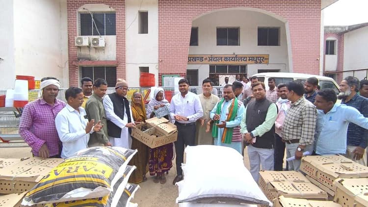 मधुपुर. प्रखंड कार्यालय परिसर में मुख्यमंत्री पशुधन विकास योजना के तहत शनिवार को लो इनपुट लेयर कुक्कुट विकास योजना के तहत विभिन्न पंचायत के सात लाभुकों के बीच लेयर कुक्कुट चूजा का वितरण किया गया. मुर्गी पालन को लेकर लेयर कुक्कुट चूजा का वितरण प्रखंड प्रमुख पदमनी देवी, बीडीओ अजय कुमार दास, सीओ यामुन रविदास ने संयुक्त रूप से किया. इस अवसर पर प्रमुख ने कहा कि क्षेत्र के हर किसान को आत्मनिर्भर बनाने के लिए सरकार योजनाएं चला रही है. इसे धरातल पर सफल बनाने के लिए सभी किसानों को कार्य करना होगा. जो योजनाएं दी जा रही है उसे सफल बनाकर आगे वृहद पैमाने पर योजनाओं को चलाकर लोगों को रोजगार से जोड़ने का काम करें. बीडीओ ने कहा कि मुख्यमंत्री पशुधन विकास योजना सरकार की महत्वाकांक्षी योजना है, जिसका लाभ लेकर इस क्षेत्र के पशुपालक चूजा पालन कर अपना रोजगार को बढ़ाकर आत्मनिर्भर बने. सीओ ने कहा कि सरकार इस योजना का लाभ लाभुकों को अनुदान पर दे रही है, जिसका लाभ लेकर लाभुक लाभान्वित होंगे. प्रखंड पशुपालन पदाधिकारी डाॅ हरेरामजी दिनकर ने कहा कि वितरण किये गये चूजा बीमा से आच्छादित है. इस योजना के तहत लाभुक आत्मनिर्भर बनने की दिशा में आगे बढ़ सकते है. साथ ही इसके पालन के बारे में जानकारी देकर विधि बताकर उसके बीमारी तथा रोकथाम के उपाय बताया. मौके पर प्रखंड 20 सूत्री अध्यक्ष दिनेश्वर किस्कू, विधायक प्रतिनिधि गंगा दास, मुखिया दिनेश कुमार, साकिर अंसारी, सहीम खान, सुशील सिंह समेत विभिन्न पंचायत के पंचायत सचिव, प्रखंड कर्मी आदि मौजूद थे.
