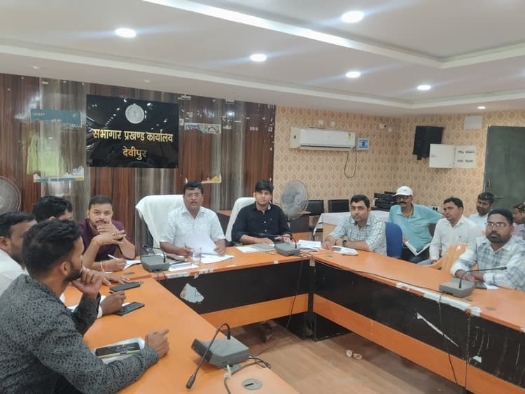 देवीपुर. प्रखंड सभागार में शुक्रवार को बीडीओ राजेश बरला ने कर्मियों के साथ एक बैठक की. इस दौरान विभिन्न पंचायतों में चल रही जन कल्याणकारी योजनाओं की समीक्षा की. बीडीओ ने कार्यरत रोजगार सेवक, पंचायत सचिव व अन्य कर्मियों को बायोमेट्रिक उपस्थिति दोनों समय दर्ज करने के लिए निर्देशित किया. कहा कि सभी कर्मी हर दिन अपने कार्य क्षेत्र में उपस्थित होकर पंचायत भवन में बायोमेट्रिक अटेंडेंस अनिवार्य रूप से दर्ज कराएं. कहा कि उनका मानदेय या वेतन का भुगतान बायोमेट्रिक उपस्थिति के आधार पर ही किया जायेगा. वहीं, बीडीओ ने सभी अपूर्ण आवास को जल्द से पूर्ण कराने का निर्देश पंचायत सचिव रोजगार सेवक को दिया.