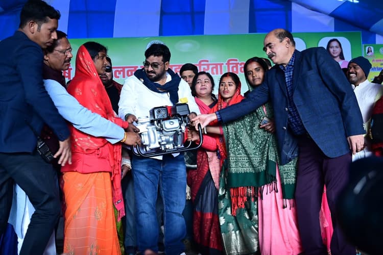 किसान मेले में मंत्री द्वारा जेएसएलपीएस की महिलाओं को 18.51 करोड़ रुपये का चेक सहित पंपसेट व अन्य कृषि यंत्र का वितरण किया गया. मेला में फल, फूल, सब्जी व अन्य कृषि उत्पाद प्रदर्शनी में कुल 120 किसानों को पुरस्कृत किया गया. प्रदर्शनी में दशरथ कापरी, श्रीकांत महतो, दिलीप कुमार सिंह, विवेकांनद चौधरी, कामदेव मारिक, वकील यादव के साथ-साथ 120 किसानों को प्रथम, द्वितीय व तृतीय पुरस्कार दिये गये. मौके पर डीडीसी नवीन कुमार, झामुमो जिला अध्यक्ष संजय शर्मा, कांग्रेस जिला अध्यक्ष प्रो उदय प्रकाश, डीएओ यश राज, उप परियोजना निदेशक अरविंद कुमार राय, डाॅ राजन ओझा, पूनम सोरन, अखिलेश कुमार झा, शशांक शेखर, अजीत कुमार सिंह आदि थे.