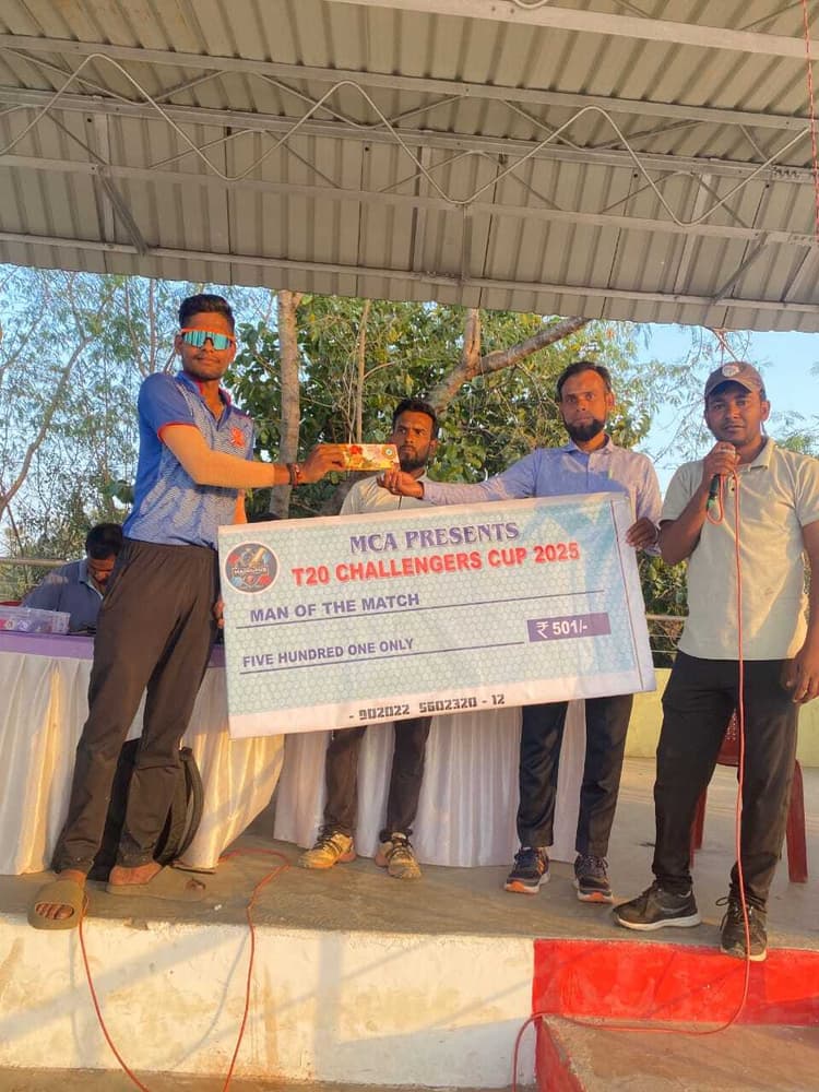 मधुपुर. शहर के बावनबीघा स्थित रेलवे टीटीसी मैदान में मधुपुर क्रिकेट अकादमी के तत्वावधान में आयोजित टी 20 चैलेंजर कप नॉकआउट क्रिकेट प्रतियोगिता में रविवार को जसीडीह क्रिकेट टीम व लाज एकेडमी दुमका के बीच खेला गया. टॉस जीतकर जसीडीह ने बल्लेबाजी करते हुए 17.2 ओवर में सभी विकेट खोकर 112 बनाया. जसीडीह टीम से अमित रॉय 33 व सुमित ने 23 रन बनाये. वहीं जवाबी पारी खेलने उतरे लाज एकेडमी दुमका ने निर्धारित लक्ष्य को नौ विकेट खोकर प्राप्त कर लिया. दुमका के लक्ष्मण ने चार व रवींद्र ने दो विकेट लिया. दुमका की से अभिषेक ने 27 व आनंद ने 20 रन बनाया. लक्ष्मण को चार विकेट लेने पर मैन ऑफ दी मैच का पुरस्कार दिया गया. अंपायर के रूप में मो. कौशल शेख व रेहान रहे. बताते चले कि नॉकआउट क्रिकेट प्रतियोगिता में कुल 16 टीम में हिस्सा ले रही है.
