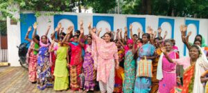महिलाओं के बीच किया गया वस्त्र वितरित