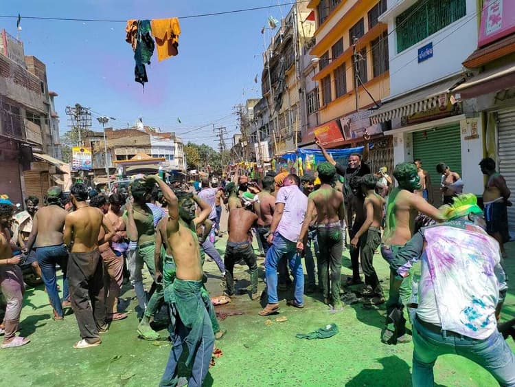 मधुपुर. शहर समेत ग्रामीण अंचलों में होली का पर्व उल्लास और शांतिपूर्ण वातावरण में मनाया गया. इस अवसर पर क्षेत्र में नीला, पीला, हरा गुलाबी, कच्चा-पक्का रंग, गीतों की धुनों पर थिरकते युवा व बच्चे होली के रंग में सराबोर दिखे. रंगों से बचने के लिए कोई इधर भाग रहा था तो कोई उधर, परंतु रंग, अबीर और गुलाल से सभी रंगे नजर आए. लोग टोलियां बनाकर होली के गीतों की धुन पर थिरकते नजर आये. दूसरे पहर में लोगों के मिलने-जुलने का सिलसिला शुरू हो गया. बड़े-बुजुर्गो को गुलाल लगाकर आशीर्वाद लिया. वहीं बड़े भी उन्हें गले लगाकर प्रेम से सराबोर कर दिया. देर शाम तक लोगों का मिलना जुलना चलता रहा. वहीं, शहर के गांधी चौक पर होली मिलन समारोह का आयोजन किया गया. होली के गीत-संगीत, रंग- गुलाल के बीच हर्षोल्लास के साथ मनाया गया. सभी के एक दूसरे को अबीर-गुलाल लगाकर होली की बधाई दी. साथ ही होली के गीतों पर झूमते नजर आये. मौके पर सचिन रवानी, प्रकाश मंडल, मोती सिंह, अशोक गौड़, पूर्व नप अध्यक्ष संजय यादव, दिलीप चौधरी, पप्पू यादव, सुभाष सिंह, गोपी बर्मन, राजू यादव, संतोष शर्मा, बीनू यादव, अजय सिंह, रवि रवानी, अवनी भूषण, अमोद गुप्ता, मुन्ना गुप्ता, राकेश वर्मा, विनोद कुमार, सूरज सोलंकी, दीपक मिश्रा, संजय पाठक, विक्की भारद्वाज, प्रदीप शर्मा, सुंदरी यादव, समेत दर्जनों लोग एक दूसरे से मिलकर होली की बधाई दी. होली को लेकर प्रशासन पूरी तरह से मुस्तैद दिखी. प्रशासन पर्व को शांतिपूर्ण ढंग से संपन्न कराने को लेकर विभिन्न स्थानों पर मजिस्ट्रेट व पुलिस बल की तैनाती की गयी थी. शांतिपूर्ण माहौल में आपसी भाईचारे के साथ होली का पर्व संपन्न हुआ. इस दौरान एसडीपीओ सत्येंद्र प्रसाद, सीओ यामुन रविदास, इंस्पेक्टर इंचार्ज त्रिलोचन तामसोय समेत अन्य पुलिस पदाधिकारियों होली के दौरान सुरक्षा में चौकस रहे. ————– होली के रंग में मगन हुआ हर किसी का मन
