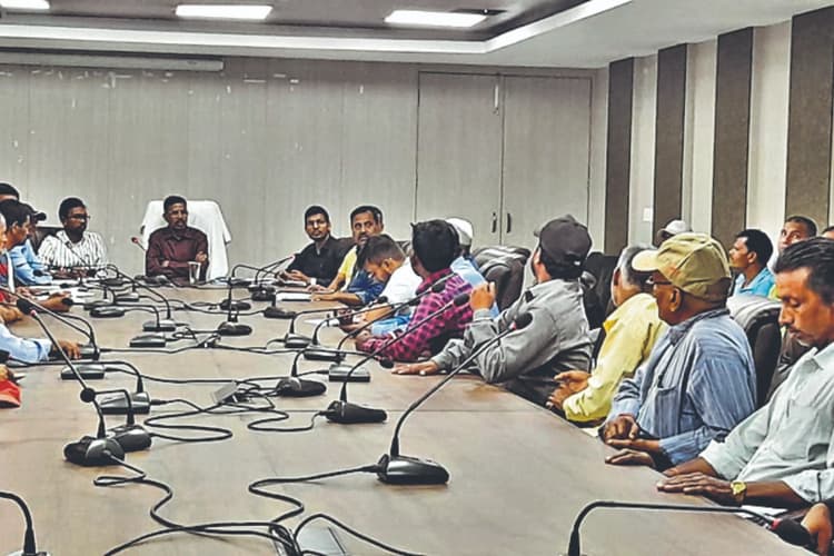 देवघर नगर आयुक्त योगेंद्र प्रसाद के साथ झारखंड लोकल बॉडीज इम्प्लाइज फेडरेशन के प्रतिनिधि मंडल की बैठक बुधवार को नगर निगम में हुई, जिसमें फेडरेशन ने अपनी मांगों को अवगत कराया और उस पर चर्चा हुई. हालांकि आधे घंटे की वार्ता के बाद भी सहमति नहीं बनी. इसके बाद प्रतिनिधि मंडल में शामिल सदस्य नाराजगी जताते हुए नगर आयुक्त के चेंबर से बाहर निकल गये. फेडरेशन के अध्यक्ष संजय मंडल ने बताया कि नगर आयुक्त ने मांगों को जायज बताते हुए स्वीकार करने की बात कही है, लेकिन कोई समय-सीमा तय नहीं कर रहे थे. ऐसे में वार्ता के कोई मायने नहीं है.
