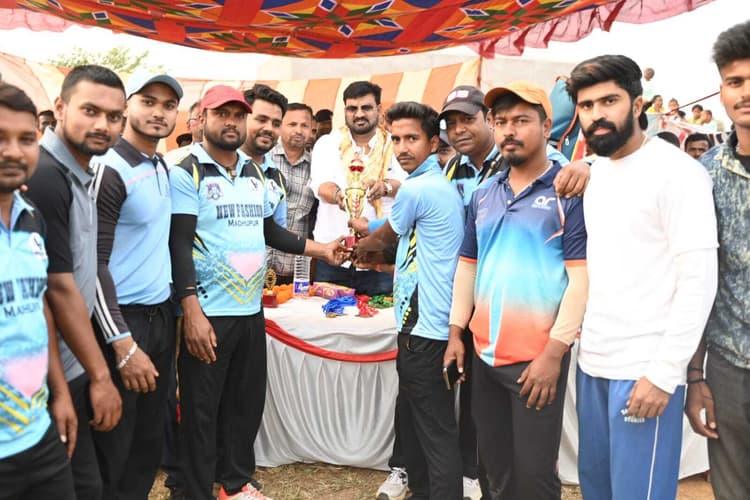 मधुपुर. प्रखंड के लेड़वा खेल मैदान में युवा क्लब सिमरातरी के तत्वावधान में आयोजित क्रिकेट प्रतियोगिता का फाइनल मुकाबला सफेद इलेवन सिमरा व बादशाह इलेवन के बीच खेला गया. टॉस जीत कर सफेद इलेवन ने पहले बल्लेबाजी करते हुए निर्धारित 15 ओवर में 89 रन बनाया. जवाबी पारी खेलने उतरी बादशाह इलेवन की टीम ने बेहतर खेल का प्रदर्शन करते हुए फाइलन मैच जीत लिया. प्रतियोगिता में कुल 16 टीमों ने हिस्सा लिया था. विजेता व उपविजेता टीम को प्रदेश के अल्पसंख्यक कल्याण सह जल संसाधन मंत्री हफीजुल हसन ने पुरस्कृत किया. मौके पर उन्होंने कहा कि क्रिकेट युवाओं का पसंदीदा खेल है. युवाओं को खेल में भी करियर बना सकते है. खेल में हार जीत लगी रहती है. हारे हुए टीम को निराश नहीं होना चाहिए. मौके पर शशि कुमार दास, असरफ शेख, ताजउद्दीन शेख, इसराज शेख, हदीश शेख, निसार शेख, सफीक शेख, सोयब आलम, कैलाश दास, विजय दास आदि खेल प्रेमी मौजूद थे. —————— क्रिकेट प्रतियोगिता में बादशाह इलेवन ने सफेद इलेवन संघरा को किया पराजित