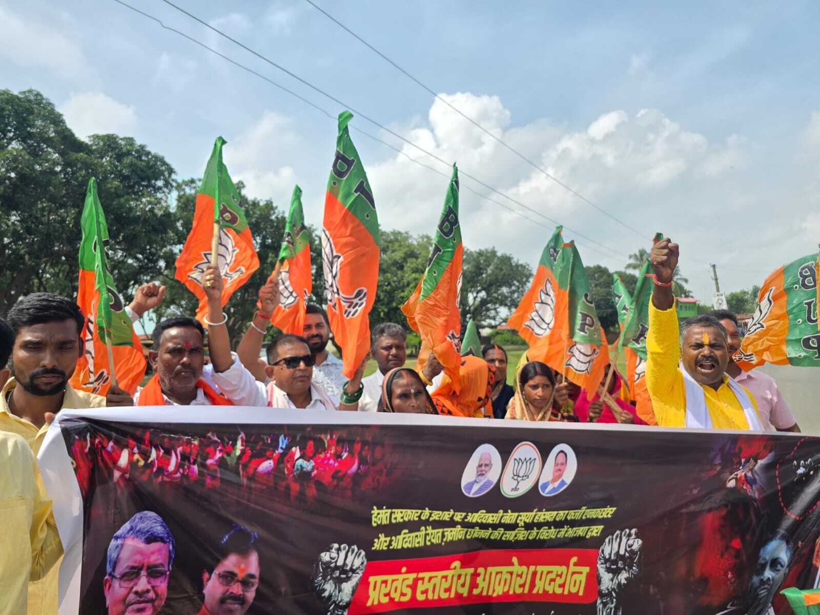 मारगोमुंडा. प्रखंड कार्यालय परिसर में पूर्व मंत्री राज पलिवार के नेतृत्व में भाजपा कार्यकर्ताओं ने मंगलवार को 16 सूत्री मांगों को लेकर राज्य सरकार के खिलाफ धरना-प्रदर्शन किया. मौके पर पूर्व मंत्री ने कहा कि सरकार आदिवासियों के साथ सौतेला व्यवहार कर रही है. आदिवासियों की आवाज को दबाने के लिए उभरते हुए नेता सूर्या हांसदा का एनकाउंटर करा दिया. ताकि मूलवासी, आदिवासी समेत राज्य की आम जनता की आवाज दबाई जा सके. कहा कि प्रखंड कार्यालय में भ्रष्टाचार व्याप्त है. मंईयां सम्मान योजना में स्क्रूटनी कर महिलाओं को योजनाओं से वंचित किया जा रहा है. धरना-प्रदर्शन के बाद राज्यपाल के नाम ज्ञापन सौंपने जा रहे प्रखंड कार्यालय में ज्ञापन लेने के लिए कोई नहीं रहने पर पूर्व मंत्री राज पलिवार ने पार्टी कार्यकर्ताओं के साथ प्रखंड कार्यालय के मुख्य गेट में ताला जड़ दिया. इस दौरान बीडीओ प्रखंड कार्यालय पहुंचे. बीडीओ ने पूर्व मंत्री से आग्रह करने के बाद गेट में लगा ताला को खोल दिया गया. जिसके बाद राज्यपाल के नाम बीडीओ को ज्ञापन सौंपा गया. मौके पर भाजपा प्रखंड अध्यक्ष परमेश्वर मंडल, प्रखंड महामंत्री सुधीर यादव, छोटन पांडेय, दिलीप तिवारी, पप्पू रजक, जगदीश यादव, लक्ष्मण मंडल, विक्रम तिवारी, गगन तिवारी, मृत्युंजय तिवारी, लालमनी मंडल, अस्ति कुमार सिन्हा, मुकेश यादव, सूरज गुप्ता, नीरज गुप्ता, राजा गुप्ता आदि मौजूद थे. हाइलार्ट्स : ज्ञापन सौंपने गये पूर्व मंत्री राज पलिवार ने ब्लॉक में जड़ा ताला पूर्व मंत्री राज पलिवार ने पार्टी कार्यकर्ताओं के साथ ब्लॉक के मुख्य गेट में ताला जड़ा