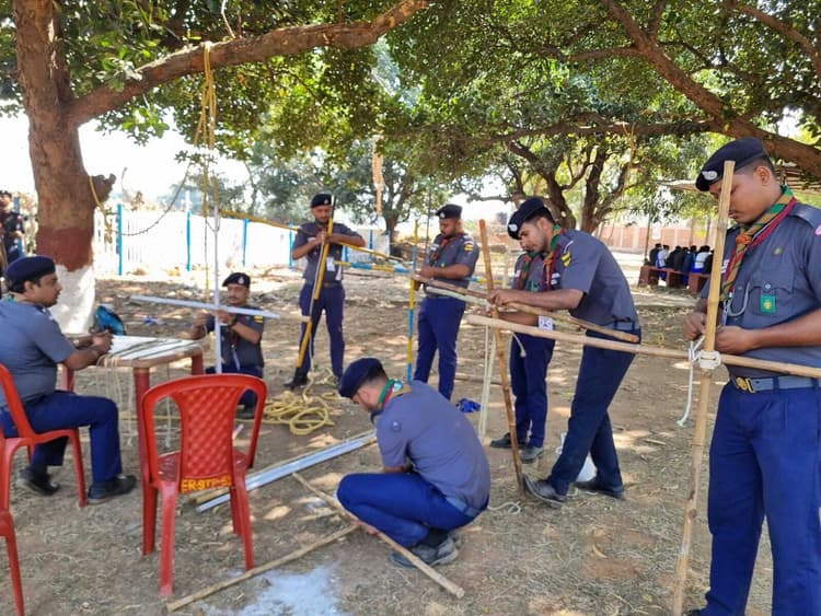 मधुपुर. शहर के बावनबीघा स्थित भारत स्काउट एंड गाइड राज्य प्रशिक्षण पार्क में हिमालय वुड बैज कोर्स ट्रेनिंग कार्यक्रम का आयोजन किया गया. 9 फरवरी से 15 फरवरी तक चलने वाली इस ट्रेनिंग कार्यक्रम में पांच समवर्ती पाठ्यक्रमों की मेजबानी करने के लिए लगातार महत्वाकांक्षी प्रयास कर रहे है. पाठ्यक्रम के लीडर शम्भूनाथ सेनगुप्ता, लेफ्टिनेंट (सी ), संगीता रक्षित लेफ्टिनेंट (सी ), एमड़ी यूसुफ, लेफ्टिनेंट (एस ) से है. जो पश्चिम बंगाल से एसएमटी रत्ना डी, लेफ्टिनेंट (जी) और सैयद जहांगीर हबीब, एलटी (आर) क्रमशः कब, बुलबुल, स्काउट, गाइड और रोवर वर्गों के लिए कि प्रस्तुति की, जिसमें 81 प्रशिक्षुओं व 29 कर्मचारियों को पांच वर्गों में सहायक स्टाफ सदस्यों – क्यूब, स्काउट, रोवर, बुलबुल और गाइड है. इन सभी ने बीपी सिक्स, सही सामग्री व सही तरीके का ध्यान रखने के अभ्यासों में भाग लिया. साथ ही बीएसजी के मूल सिद्धांतों, कैंपक्राफ्ट, फायर बिल्डिंग, मैपिंग, टेंट पिचिंग और अग्रणी परियोजना निर्माण के उन्नत ज्ञान पर ध्यान केंद्रित किया. जो प्रतिभागियों को हाथों पर अनुभव और आवश्यक कौशल प्रदान करते है. ताकि उनकी स्काउटिंग क्षमताओं को बढ़ाया जा सके.