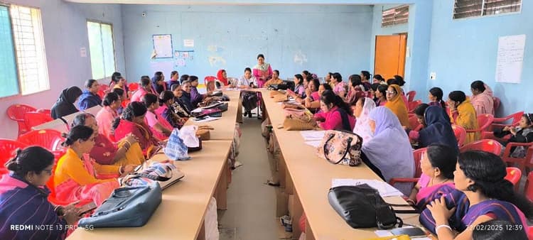 मधुपुर. प्रखंड कार्यालय परिसर स्थित बाल विकास परियोजना कार्यालय सभागार में शनिवार को सीडीपीओ नीतू कुमारी ने आंगनबाड़ी सेविकाओं के साथ मासिक समीक्षात्मक बैठक की. बैठक में बेहतर ढंग से आंगनबाड़ी संचालन केंद्र में नमातिक मातृ वंदना योजना, भवन, पेयजल, शौचालय समेत अन्य समस्याओं की समीक्षा की. वहीं, सीडीपीओ ने कहा कि सेविकाएं सरकार की ओर से चलायी जा रही योजनाओं के बारे में अपने पोषक क्षेत्र के महिलाओं व किशोरियों को जानकारी दें, जिससे योजनाओं से लोग लाभ ले सके. कहा कि मुख्यमंत्री बेटी बहन, स्वावलंबन प्रोत्साहन योजना, सावित्रीबाई फुले योजना व मुख्यमंत्री कन्यादान योजनाओं का फायदा उठा सके. उन्होंने सेविकाओं को बेहतर आंगनबाड़ी संचालन को लेकर कई जानकारी उपलब्ध करायी. सेविकाओं को निर्देश देते हुए कहा कि सभी सेविकाएं प्रधानमंत्री मातृ वंदना के अंतर्गत लाभुकों की पंजीकरण एवं प्रथम किस्त के दावे के लिए आवेदन का ऑनलाइन करें. साथ ही 9 से 14 वर्ष तक किशोरियों की रिपोर्ट कार्यालय को उपलब्ध कराये. साथ ही केंद्र संचालन में हो रही समस्या जैसे भवन, पेयजल, शौचालय जैसी समस्याओं की भी समीक्षा कर इसकी रिपोर्ट सेविकाओं को विभाग को देने की बात कही. वहीं, सेविकाओं को समय पर आंगनबाड़ी केंद्र खोलने, बच्चों की मापी और वजन हर माह करें और पोषण ट्रैकर में एंट्री करें. उन्होंने केंद्र की साफ-सफाई रखने और बच्चों की उपस्थिति बढ़ाने का भी निर्देश दिया. मौके पर पर्यवेक्षिका प्रियंका कुमारी, सालंती हेंब्रम, टिंकू दास, अशोक मांझी समेत दर्जनों सेविकाएं मौजूद थे. ——————– सीडीपीओ ने किया सेविकाओं के साथ की मासिक समीक्षा बैठक