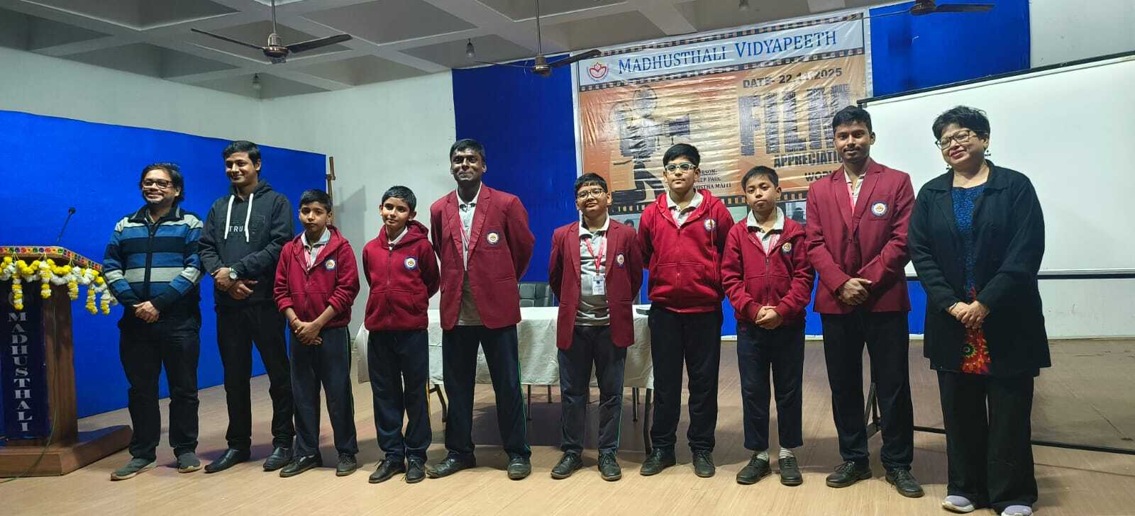 मधुपुर. प्रखंड के सलैया स्थित मधुस्थली विद्यापीठ परिसर में फिल्म एप्रिशिएशन कार्यशाला का व्यावहारिक कार्यक्रम प्रारंभ किया गया. अत्याधुनिक तकनीक व विद्यार्थियों के करियर निर्माण के क्षेत्र में विद्यालय स्तर पर पहली बार मधुस्थली विद्यापीठ में कार्यक्रम का आयोजन हुआ. इस अवसर पर उपस्थित अतिथियों ने बताया कि इससे जहां एक ओर विद्यापीठ के विद्यार्थियों का कौशल विकास हो रहा है. वहीं वे फिल्म निर्माण के क्षेत्र में अपने अच्छे करियर को तलाश रहे हैं. विशेषकर कक्षा दशम के विद्यार्थियों के करियर निर्माण के लिए यह कार्यक्रम विशेष रूप से प्रेरणादायक रहा. मधुस्थली विद्यापीठ के छात्रावास में रहने वाले कक्षा अष्टम तथा दशम के छात्रों ने रीक घोष द्वारा रचित एवं निर्देशित संक्षिप्त फिल्म हाफ पास्ट नाईन का रात के अंधेरे में शूटिंग का अभ्यास किया. विद्यापीठ के विद्यार्थियों के इस कार्य का दिशा निर्देशन एवं सहयोग विद्यापीठ के शिक्षा पदाधिकारी डॉ. जनार्दन धोष ने किया. वहीं राष्ट्रीय फिल्म पुरस्कार विजेता शर्मिष्ठा मैती, राजदीप पॉल व विद्यापीठ के शिक्षा पदाधिकारी डॉ जनार्दन घोष के दिशा निर्देशन में मधुस्थली विद्यापीठ कैंपस के सभागार में व्यावहारिक रूप से फिल्म निर्माण कैसे किया जा सकता है जैसी कलाकृति की कार्यशाला आयोजित किया. कार्यक्रम में भारतीय चलचित्र का इतिहास और चलती-फिरती तस्वीरें, फिल्म शो, फिल्म निर्माण कला फिल्म निर्माण के क्षेत्र में करियर के बारे में जानकारी उपलब्ध कराया गया. भारतीय खगोल विज्ञान का वृत्तचित्र विद्यार्थियों को चलचित्र के माध्यम से दिखाकर प्राचीन काल में खगोल विज्ञान के क्षेत्र में भारतीय खगोल वैज्ञानिकों के महत्वपूर्ण योगदान को दर्शाया गया व संक्षिप्त फिल्म निर्माण कला में उनकी रुचि बढ़ाया गया. कार्यक्रम में विद्यापीठ कैंपस प्रबंधन, डीन ऑफ एक्टीविटी, अध्यापक- अध्यापिकाओं की सराहनीय भूमिका रहा.