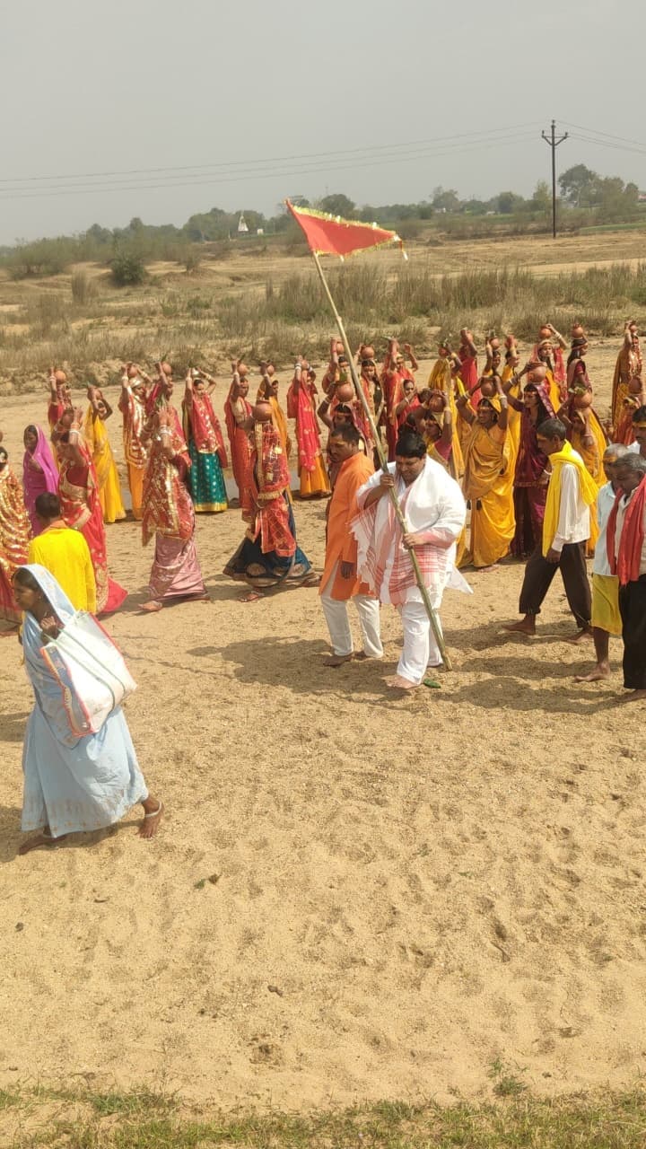 सारवां. प्रखंड क्षेत्र की भंडारो पंचायत बजरंगबली मंदिर नोखिला में श्रीराम कथा को लेकर बाजे-गाजे के साथ पंडित प्रहलाद पांडे और यजमान श्रीकांत यादव की देखरेख धर्म पताका लहराते भव्य कलश यात्रा निकाली गयी. विभिन्न मुहल्लों की परिक्रमा करते स्थानीय नदी पहुंची. इस अवसर पर पंडितों ने कलश पर रोली स्वास्तिक का चिन्ह बनाकर पूजन कराकर जल भरवाया और जय श्रीराम के जयकारा लगाते हुए महिलाएं 51 कलश लेकर मंदिर प्रांगण पहुंची. मौके पर अखंड अष्टयाम का संकल्प लिया गया. यात्रा संचालन में पूर्व कृषि मंत्री बादल पत्रलेख, बास्की यादव, पूर्व मुखिया सरस्वती देवी समेत ग्रामीणों ने अहम भूमिका निभायी.