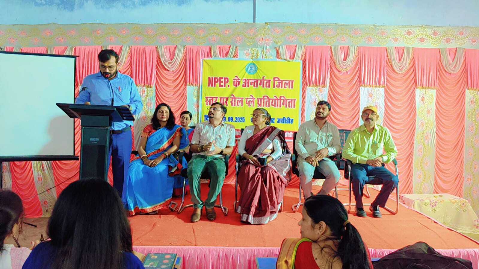 वरीय संवाददाता, देवघर. जिला शिक्षा व प्रशिक्षण संस्थान(डायट), जसीडीह में राष्ट्रीय जनसंख्या शिक्षा परियोजना के अंतर्गत जिला स्तरीय रोल प्ले प्रतियोगिता का सफल आयोजन किया गया. कार्यक्रम का संचालन प्राचार्य सह जिला शिक्षा अधीक्षक मधुकर कुमार के निर्देशन में हुआ. प्रतियोगिता की शुरूआत प्रभारी प्राचार्य श्रीमती कुमारी व संकाय सदस्यों ने संयुक्त रूप से किया. मौके पर जिले के सभी 10 प्रखंडों के छात्रों ने भागीदारी की. प्रत्येक टीम को छह मिनट की प्रस्तुति का समय दिया गया. प्रतियोगिता के विषयों में स्वस्थ बढ़ना, जेंडर समानता, सोशल मीडिया व इंटरनेट का सुरक्षित प्रयोग, स्वस्थ जीवनशैली, पोषण व स्वास्थ्य स्वच्छता शामिल थे. छात्रों ने अपनी प्रस्तुतियों से सामाजिक विषयों पर सकारात्मक संदेश दिया. प्रतियोगिता का मूल्यांकन महेशमारा विद्यालय के प्रभारी प्रधानाध्यापक विजय शंकर ठाकुर और बुनियादी ठाढ़ी के संगीत शिक्षक प्रभाकर कुंजिलवार ने किया. मंच संचालन डॉ. परशुराम तिवारी व डॉ. इति कुमारी ने निभाया और धन्यवाद ज्ञापन मुकेश कुमार सिंह ने किया. वहीं, कार्यक्रम समन्वयक मुकेश कुमार सिंह ने बताया कि प्रतियोगिता में रानी मंदाकिनी प्लस टू विद्यालय, मधुपुर के छात्रों ने उत्कृष्ट प्रदर्शन कर प्रथम स्थान, द्वितीय स्थान कस्तूरबा गांधी बालिका विद्यालय, पालोजोरी की छात्राओं ने तथा तृतीय स्थान कस्तूरबा गांधी बालिका विद्यालय, मोहनपुर की छात्राओं के नाम रहा. विजेता प्रतिभागियों को मेमेंटो व प्रमाणपत्र देकर सम्मानित किया गया. कार्यक्रम में सदस्य शोभा कुमारी, अनुभूति, रीना कुमारी, सविता, गजानन राय, आत्माराम प्रसाद, राज मंगल शर्मा, दयानंद ठाकुर सहित बड़ी संख्या में शिक्षक एवं शिक्षाविद उपस्थित थे. ॰जिला स्तरीय रोल प्ले प्रतियोगिता में मधुपुर रहा प्रथम