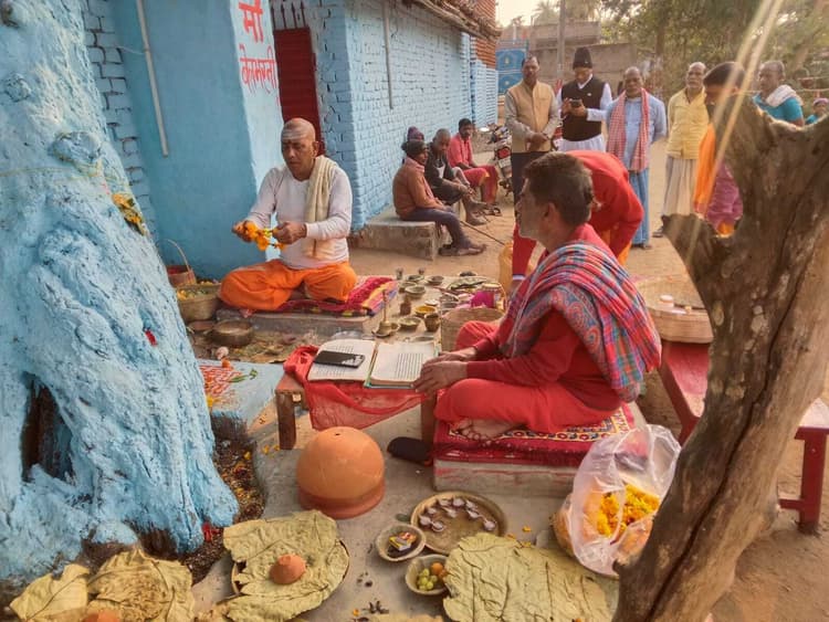 सारवां. प्रखंड क्षेत्र स्थित चौवा मड़वा के सार्वजनिक दुर्गा मंदिर में माघी नवरात्र के छठ दिन शनिवार का मां का धार्मिक अनुष्ठान बेलभरनी पूजा (या बिल्व निमंत्रण) का आयोजन किया गया. इस दौरान माता बेलभरनी को निमंत्रण देने को लेकर आचार्य मनोज महाराज, सहयोगी शिबू महाराज, पंडित छोटेलाल मिश्र ,पंडित महेश्वर झा आदि ढोल-नगाड़े के साथ मां का जयकारा लगाते बिल्व वृक्ष के पास पहुंचे. इस अवसर पर वैदिकों ने षोडशोपचार विधि से बिल्व वृक्ष की पूजा विधि-विधान से पूजन कराया और माता को मंदिर आने का निमंत्रण दिया गया. रविवार को अहले सुबह मां बेलभरनी को डोली पर बैठा कर मंदिर लाया जायेगा, जहां मंदिर के दरवाजे पर उनको सप्त सागर जल, सप्त नदी जल के साथ विभिन्न द्रव्यों से माता को महास्नान कराया जायेगा और उनको मंदिर के अंदर प्रवेश कराया जायेगा. इसके साथ ही मंदिर के पट श्रद्धालुओं के दर्शन को लेकर खोल दिए जायेंगे. पूजा व्यवस्था संचालन में समिति अध्यक्ष प्रणव सिंह, सचिव प्रमुख रावत, कोषाध्यक्ष शंकर राउत, उपाध्यक्ष मुकुट सिंह, पिंकू बलियासे, बबन बलियासे,गणेश रावत, अनोज बलियासे, अजीत सिंह, राजेश मिश्रा, पिंकू बलियासे समेत बड़ी संख्या में कमेटी के सदस्य मौजूद थे. हाइलार्ट्स : सारवां के चौवा मड़वा के सार्वजनिक दुर्गा मंदिर में धार्मिक अनुष्ठान