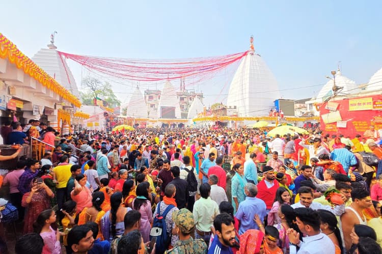Maha Shivratri 2025: महाशिवरात्रि पर बाबा बैद्यनाथ मंदिर में दर्शन-पूजन के लिए आस्था का सैलाब उमड़ पड़ा. इस दौरान करीब पौने 2 लाख भक्तों ने बाबा का जलाभिषेक कर मंगलकामना की. शीघ्रदर्शनम कूपन लेकर 7,543 भक्तों ने पूजा की. महाशिवरात्रि पर जलार्पण के लिए मंगलवार रात से ही लोगों की कतार लग गयी थी. बुधवार सुबह पट खुलने से पहले ही कतार करीब 6 किमी से अधिक लंबी हो गयी. बाबा की दैनिक सरदारी पूजा के बाद श्रद्धालुओं के लिए पट खोल दिये गये. कतार में हर-हर महादेव, जय बाबा बैद्यनाथ के जयघोष गूंजने लगे. लोगों ने कतारबद्ध होकर शिवराम झा चौक से क्यू कॉम्प्लेक्स के रास्ते संस्कार मंडप होते हुए गर्भगृह में जाकर जलार्पण किया. इस दौरान बड़ी संख्या में अविवाहितों ने बाबा को मोउर मुकुट अर्पित किया. विवाहित जोड़ों ने बाबा और मां पार्वती मंदिर के बीच गंठबंधन कराया.