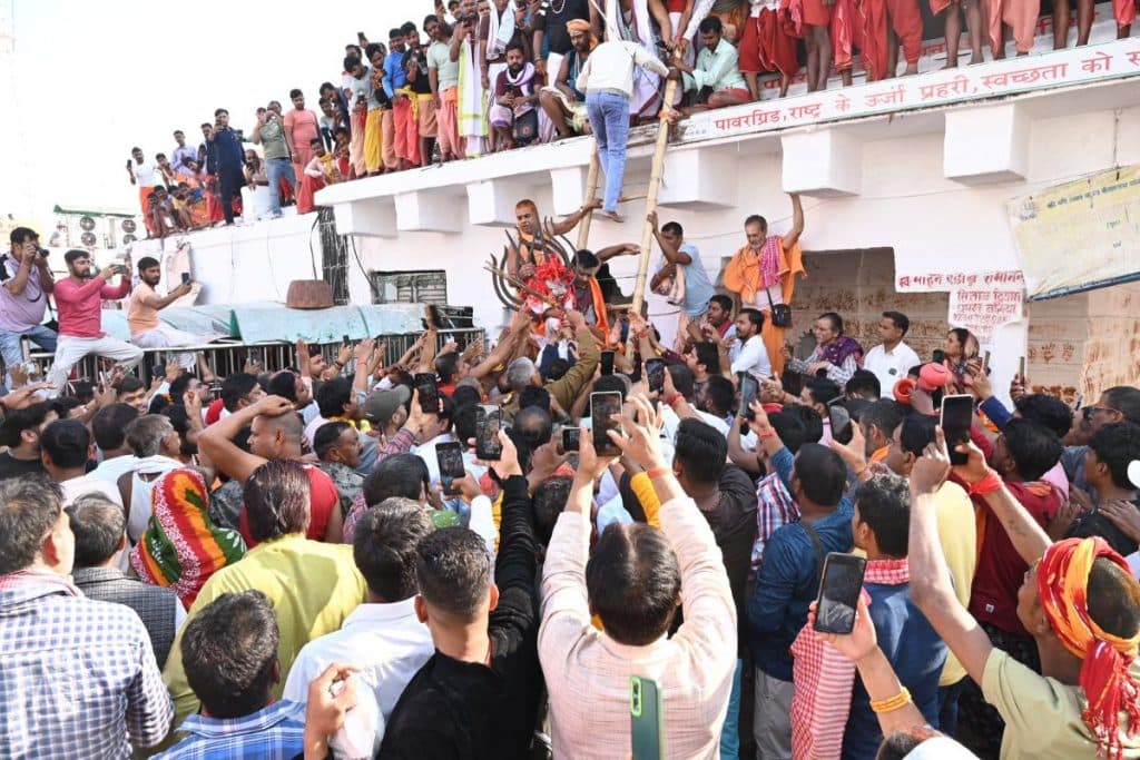 - बाबा भोलेनाथ और पार्वती मंदिर से उतरे पंचशूल के स्पर्श के लिए उमड़ी भीड़