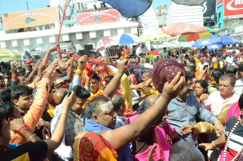 उसके पश्चात सरदार पंडा ने गठबंधन का संकल्प कर सबसे पहले बाबा व माता के सुहाग तथा प्रेम के प्रतिक गठबंधन को दोनों मंदिरों के बीच चढ़ा कर आम भक्तों के लिए गठबंधन चढ़ाने की परंपरा को प्रारंभ की गयी. इस दौरान हर-हर महादेव के जयकारे से पूरा मंदिर परिसर गूंज उठा.