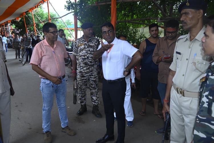 प्रमुख संवाददाता, देवघरश्रावणी मेला के पहले दिन पहली सोमवारी पर कांवरियों की भीड़ उमड़ पड़ी. सोमवारी पर जलार्पण के लिए रविवार देर रात से कांवरिये कतार में लगे हुए थे. डीसी विशाल सागर और एसपी अजीत पीटर डुंगडुंग देर रात से ही बाबा मंदिर से लेकर पूरे रूटलाइन पर नजर बनाये हुए थे. अहले सुबह जब बाबा मंदिर में जलार्पण शुरू हुआ, तो कांवरियों की कतार बढ़ने लगी. डीसी ने श्रद्धालुओं के जलार्पण को लेकर रूटलाइन का निरीक्षण किया. इस दौरान बीएड कॉलेज, नेहरू पार्क, शिवराम झा चौक, नेहरू पार्क व बाबा मंदिर आसपास के क्षेत्रों का निरीक्षण किया और प्रतिनियुक्त दंडाधिकारियों व पुलिस पदाधिकारियों को निर्देश दिया कि जलार्पण के लिए बनाये गये निर्धारित रूटलाइन का अनुपालन सुनिश्चित करायें, ताकि श्रद्धालुओं को सुगम व सुरक्षित जलार्पण कराया जा सके. मंदिर में एसपी, तो रूटलाइ़न में डीसी कमान संभाले हुए थे. हालांकि डीसी बाबा मंदिर से लेकर पूरे रूट लाइन में पैदल ही घूमते रहे. वे कांवरियों से बातचीत कर सुविधाओं से अवगत होते रहे. जहां कहीं कमी दिख रही थी, डीसी अधिकारियों को निर्देश देकर उसे तुरत दुरुस्त कराते देखे गये. रूटलाइन की व्यवस्था को रखें मजबूत : निरीक्षण के क्रम में डीसी ने रूटलाइन में सुरक्षात्मक उपायों की बारीकी से जांच करते रहने और सभी व्यवस्था को दुरुस्त रखने का निर्देश दिया, ताकि देवघर आने वाले श्रद्धालुओं को किसी प्रकार की असुविधा नहीं हो. श्रद्धालुओं को कतारबद्ध करने को लेकर लगे बेरिकेड्स के अलावा विधि व्यवस्था, सुरक्षा व्यवस्था, यातायात व्यवस्था एवं निर्धारित रूटलाइन में कतारबद्ध जलार्पण का निरीक्षण करते हुए दंडाधिकारियों व पुलिस पदाधिकारियों को जरूरी निर्देश दिये. हाइलाट्स : अधिकारियों को निर्देश : निर्धारित रूटलाइन से ही श्रद्धालु बाबा मंदिर की ओर करें प्रस्थान श्रावणी मेला के दौरान 24 घंटे आइएमसीआर भवन रहे एक्टिव श्रावणी मेले की पहली सोमवारी पर मेला क्षेत्र में डटे रहे डीसी-एसपी