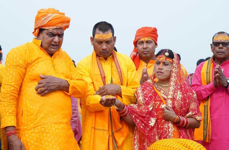 मधुपुर. प्रखंड क्षेत्र की गाड़िया पंचायत के मांगाटिल्हा गांव में शुक्रवार को हनुमान मंदिर प्राण प्रतिष्ठा को लेकर दर्जनों महिलाओं की ओर से कलश यात्रा निकाली गयी. कलश यात्रा में पुरोहित द्वारा सभी महिलाओं को बेलटिकरी घाट में पूरे विधि-विधान व मंत्रोच्चारण के साथ पूजा करवायी गयी. साथ ही सभी के कलश में जल भराया गया. जहां से श्रद्धालु अपने सर पर कलश को रखकर मंदिर प्रांगण पहुंची. जहां इस जल से मंदिर में पूजा पाठ कराया जायेगा. इस अवसर पर मुख्य उपासक विजय कुमार राम, भाजपा जिला अध्यक्ष सचिन रवानी, पूर्व नप अध्यक्ष संजय यादव, पूर्व मुखिया सुशील सिंह, पप्पू सिंह, फुलेश्वर मंडल, मुखिया मारुती देवी सहित पंचायत के दर्जनों ग्रामीण मौजूद थे.
