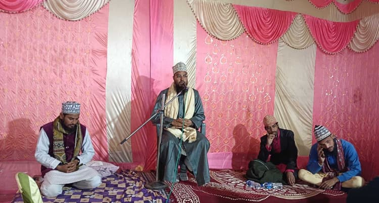 मधुपुर. शहर के लखना मोहल्ला में जश्ने मिलादुन्नबी सल्लल्लाहु अलैहि वसल्लम जलसा कार्यक्रम का आयोजन किया गया. इस अवसर पर बोकारो से आये उलेमा मौलाना मुफ्ती तारिक मिस्बाही अयुबी ने कहा कि आज हमारे समाज के लोग अपने बच्चों और बच्चियों को इस्लामी शिक्षा से दूर किए हुए हैं. उन्होंने कहा कि अपने बच्चों को उच्च शिक्षा के साथ इस्लामी शिक्षा भी दें. ताकि बच्चे इस्लामी शिक्षा के साथ उच्च शिक्षा भी हासिल कर सके. उन्होंने लड़कियों के शिक्षा की अहमियत पर जोर देते हुए कहा लड़कियों को शिक्षित होना जरूरी है क्योंकि अगर एक औरत शिक्षित होती है तो समाज के सभी बच्चे शिक्षित व बेहतर होंगे. मां अपने बच्चों को अच्छी संस्कार दें. लड़की को शिक्षित होना जरूरी है तभी हम बेहतर समाज की निर्माण कर सकते हैं. मौके पर पीरे तरीकत हजरत गुलाम गौस अयुबी, सद्दाम हुसैन, इनायत परवीन, नौली शरीफ उत्तर प्रदेश, मौलाना मुबिशरूर इस्लाम नूरी, मौलाना शहीद रजा मधुपुरी, रिजवान अयुबी, सरवर अयुबी, गुफरान अयुबी, रेहान रजा, काशिफ अयुबी, एजाज अहमद अल्तमश अशरफी आदि मौजूद थे. —————————————————————————- मधुपुर के लखना मोहल्ला में जश्ने मिलादुन्नबी सल्लल्लाहु अलैहि वसल्लम जलसा आयोजित