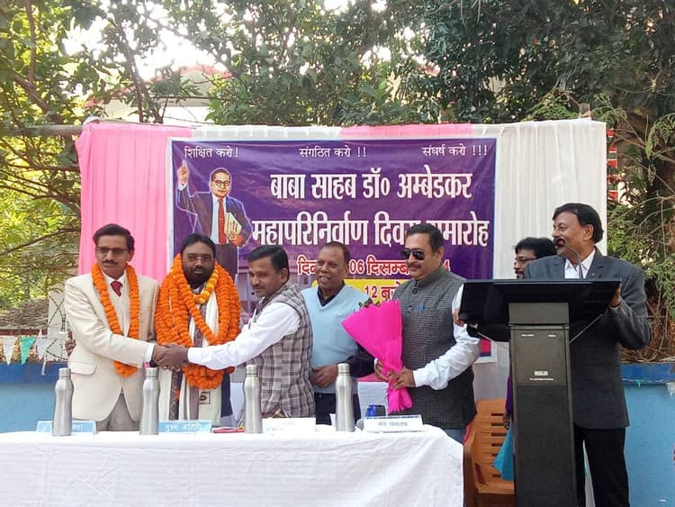 वरीय संवाददाता, देवघर. डॉ आंबेडकर पुस्तकालय में शुक्रवार को बाबा साहेब डॉ भीमराव आंबेडकर का महापरिनिर्वाण दिवस मनाया गया. इस अवसर पर नवनिर्वाचित विधायक सुरेश पासवान समेत समाज के बुद्धिजीवियों, पुस्तकालय के छात्र-छात्राओं ने बाबा साहब की प्रतिमा पर माल्यार्पण किया. कार्यक्रम के मंच पर नवनिर्वाचित विधायक सुरेश पासवान को सम्मानित भी किया गया. पुस्तकालय समिति की ओर से उन्हें शॉल व बुके देकर सम्मानित किया गया. समारोह के मुख्य अतिथि डॉ बीपी यादव व सक्रिय सदस्य राजकुमार बरनवाल ने बुके भेंट किया. कार्यक्रम के दौरान उपस्थित लोगों को संबोधित करते हुए विधायक पासवान ने कहा कि अपनी जीत के लिए विधानसभा की संपूर्ण जनता के प्रति आभार व्यक्त करता हूं, जिन्होंने भरपूर वोट देकर मुझे जिताया है. उन्होंने आश्वस्त करते हुए कहा कि मैं मंत्री न रहते हुए भी जनहित में मंत्री का कार्य करूंगा. देवघर के विकास में कोई कमी रहने नहीं दूंगा. मंत्री संजय यादव मेरे छोटे भाई की तरह हैं, देवघर की जनता के किसी भी कार्य में कोई कमी महसूस नहीं होने देंगे. पुस्तकालय में पढ़ने वाले छात्र-छात्राओं के बेहतर भविष्य की दिशा में जो भी हो सकेगा, करने को तैयार रहूंगा. मौके पर पुस्तकालय के अध्यक्ष रामदेव दास, कार्यकारी अध्यक्ष महेश कुमार लंकेश, उपाध्यक्ष कुलदीप रविदास, कोषाध्यक्ष मनोज चौधरी, नंदलाल पंडित, कृष्णा केसरी, राजकुमार बरनवाल, भंते विनय रक्षित, राजेंद्र यादव, कैलाश दास सहित दर्जनों की संख्या में सदस्य मौजूद थे.