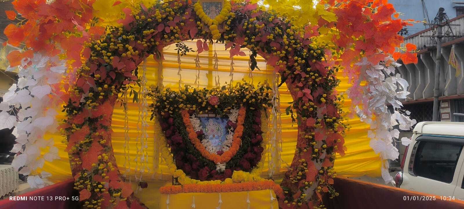 मधुपुर. नववर्ष के अवसर पर श्रीश्याम मित्र मंडली के तत्वावधान में बुधवार को निशान शोभा यात्रा निकाली गयी. निशान शोभा यात्रा में महिलाएं रंग बिरंगे परिधान व पुरुष श्याम बाबा का केसरिया दुपट्टा ओढ़े हुए थे. हाथों में निशान लिए श्याम भक्तों का यह कारवां डालमिया कूप स्थित दुर्गा मंदिर से निशान यात्रा निकाली गयी. वहीं, शहर के प्रमुख मार्गों का भ्रमण कर कुंडू बंगला स्थित श्री श्याम मंदिर व पंच मंदिर रोड स्थित श्याम मंदिर पहुंचकर श्रद्धालुओं ने निशान को श्याम बाबा के चरणों में अर्पित किया. निशान शोभा यात्रा शहर के डालमिया कूप, हटिया रोड, गांधी चौक, भगत सिंह चौक, पंचमंदिर रोड में विभिन्न संगठनों ने श्याम भक्त श्रद्धालुओं का फूलों से अभिवादन किया. निशान यात्रा में रंग-बिरंगे फूलों से सजे रथ में श्याम बाबा की सवारी व अन्य देवताओं की मनोहारी छवि से सजाई गयी थी. महिला-पुरुष श्रद्धालु नाचते-गाते चल रहे श्री श्याम बाबा का जयघोष से पूरा वातावरण भक्तिमय बना हुआ था. शोभा यात्रा में मेरे सिर पे रख दे बाबा तु अपने दोनों हाथ…, हाथों में निशान हो सामने मेरे श्याम हो.. आदि भजनों पर श्रद्धालु मगन हो चल रहे थे. श्याम बाबा को समर्पित भजन कीर्तन से माहौल श्याममय बना रहा. शोभा यात्रा के दौरान पूरे रास्ते भक्तों के लिए ठंडा पानी, शरबत व फल आदि की व्यवस्था की गयी थी. यात्रा के आयोजन में श्री श्याम मित्र मंडली के सभी सदस्यों का योगदान महत्वपूर्ण रहा. ———————- नववर्ष के उपलक्ष्य पर निकाली गयी निशान शोभा यात्रा डालमिया कूप, हटिया रोड, गांधी चौक, भगत सिंह चौक, पंचमंदिर रोड में विभिन्न संगठनों ने श्याम भक्त का फूलों से किया अभिवादन