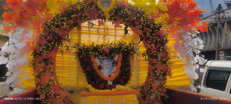 मधुपुर. नववर्ष के अवसर पर श्रीश्याम मित्र मंडली के तत्वावधान में बुधवार को निशान शोभा यात्रा निकाली गयी. निशान शोभा यात्रा में महिलाएं रंग बिरंगे परिधान व पुरुष श्याम बाबा का केसरिया दुपट्टा ओढ़े हुए थे. हाथों में निशान लिए श्याम भक्तों का यह कारवां डालमिया कूप स्थित दुर्गा मंदिर से निशान यात्रा निकाली गयी. वहीं, शहर के प्रमुख मार्गों का भ्रमण कर कुंडू बंगला स्थित श्री श्याम मंदिर व पंच मंदिर रोड स्थित श्याम मंदिर पहुंचकर श्रद्धालुओं ने निशान को श्याम बाबा के चरणों में अर्पित किया. निशान शोभा यात्रा शहर के डालमिया कूप, हटिया रोड, गांधी चौक, भगत सिंह चौक, पंचमंदिर रोड में विभिन्न संगठनों ने श्याम भक्त श्रद्धालुओं का फूलों से अभिवादन किया. निशान यात्रा में रंग-बिरंगे फूलों से सजे रथ में श्याम बाबा की सवारी व अन्य देवताओं की मनोहारी छवि से सजाई गयी थी. महिला-पुरुष श्रद्धालु नाचते-गाते चल रहे श्री श्याम बाबा का जयघोष से पूरा वातावरण भक्तिमय बना हुआ था. शोभा यात्रा में मेरे सिर पे रख दे बाबा तु अपने दोनों हाथ…, हाथों में निशान हो सामने मेरे श्याम हो.. आदि भजनों पर श्रद्धालु मगन हो चल रहे थे. श्याम बाबा को समर्पित भजन कीर्तन से माहौल श्याममय बना रहा. शोभा यात्रा के दौरान पूरे रास्ते भक्तों के लिए ठंडा पानी, शरबत व फल आदि की व्यवस्था की गयी थी. यात्रा के आयोजन में श्री श्याम मित्र मंडली के सभी सदस्यों का योगदान महत्वपूर्ण रहा. ———————- नववर्ष के उपलक्ष्य पर निकाली गयी निशान शोभा यात्रा डालमिया कूप, हटिया रोड, गांधी चौक, भगत सिंह चौक, पंचमंदिर रोड में विभिन्न संगठनों ने श्याम भक्त का फूलों से किया अभिवादन