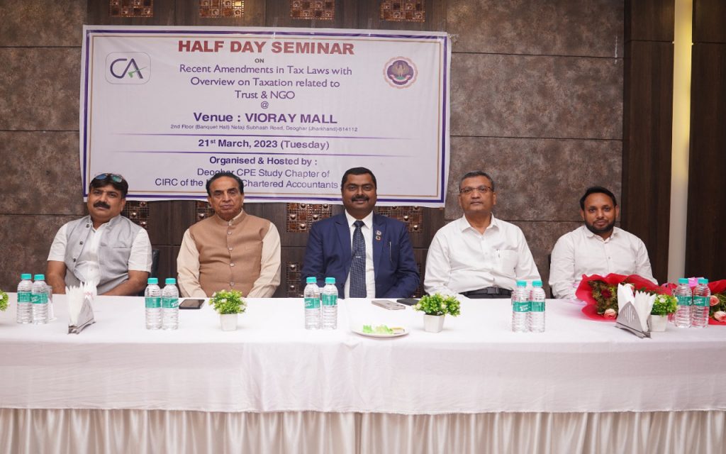 देवघर, संजीत मंडल : देवघर स्थित वायोरे इन में मंगलवार को द इंस्टिट्यूट ऑफ चार्टर्ड अकाउंटेंट ऑफ इंडिया की देवघर सीपीइ स्टडी चैप्टर ने ‘रिसेंट अमेंडमेंट ऑफ टैक्स लॉ रिलेटेड टू ट्रस्ट एंड एनजीओ’ विषय पर सेमिनार का आयोजन किया. सेमिनार में दिल्ली से आये सीनियर सीए डॉ गिरीश आहूजा और ज्ञानचंद्र मिश्र ने विस्तार से जानकारी दी.