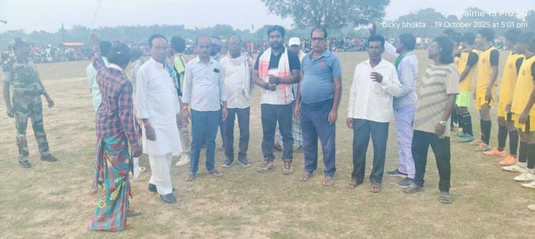 चितरा. आदिवासी सिदो-कान्हू, चांद भैरव मेमोरियल क्लब चुरुलिया की ओर से एक दिवसीय फुटबॉल टूर्नामेंट का आयोजन किया गया. वहीं, मुख्य अतिथि झारखंड आंदोलनकारी चिन्हितिकरण आयोग के सदस्य नरसिंह मुर्मू ने विजेता व उपविजेता टीम टीम को ट्रॉफी प्रदान किया. इस दौरान उन्होंने कहा कि सभी खिलाड़ियों ने खेल भावना से खेलते हुए खेल का काफी बेहतर प्रदर्शन किया. मालूम हो कि विभिन्न टीमों को पराजित करते हुए किस्कू ब्रदर्स बनाम जॉन एफसी करमाटांड़ ने फाइनल में पहुंची. वहीं, फाइनल मुकाबला में जॉन एफसी करमाटांड़ ने अपने खेल का बेहतरीन प्रदर्शन करते किस्कू ब्रदर्स को 2-0 से पराजित कर टूर्नामेंट का विजेता घोषित हुआ. मौके पर झामुमो प्रखंड युवा मोर्चा सचिव विक्की भोक्ता, प्रखंड संयुक्त सचिव रामगति सिंह, पंचायत अध्यक्ष मंजेश्वर किस्कू, उत्तम सिंह, विजय किस्कू, वैद्यनाथ पॉल, संजय महतो, मांझी हाड़ाम, अनिल किस्कू, बटेश्वर किस्कू, महादेव किस्कू आदि मौजूद थे. हाइलार्ट्स : चितरा: चुरुलिया में एक दिवसीय फुटबॉल टूर्नामेंट आयोजित