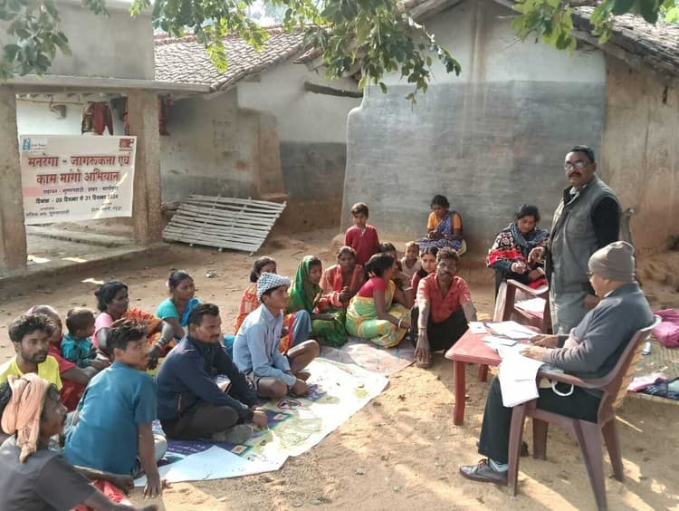 मारगोमुंडा. प्रखंड क्षेत्र की सुग्गा पहाड़ी पंचायत के विभिन्न गांवों में सोमवार को मनरेगा में काम मांगों अभियान के तहत बैठक का आयोजन किया गया. बैठक में अजीम प्रेमजी फाउंडेशन व स्वयं सेवी संस्था प्रेरणा भारती के संभवा परियोजना के तहत ग्रामीणों को मनरेगा के संबंध में विस्तार जानकारी दी गयी. बैठक में नये जॉब कार्ड के साथ मनरेगा में काम मांगने के लिए फॉर्म भरवाया गया. कार्यक्रम समन्वयक अरुण कुमार निर्झर ने बताया कि 9 से 31 दिसंबर तक सुग्गा पहाड़ी के सभी नौ गांव में यह अभियान चलाया जा रहा है. ग्रामीणों के लिए नयी जॉब कार्ड बनवाये जायेंगे. मौके पर सहिया सुधा किस्कू, देबू मरांडी, कॉर्नेलियस मुर्मू, अनुपमा मरांडी आदि मौजूद थे.