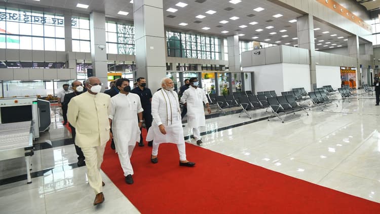 PM Modi Deoghar Visit: पीएम मोदी ने मंगलवार को 401.03 करोड़ रुपये की लागत से बनी देवघर एयरपोर्ट जनता को समर्पित किया. इसके साथ ही झारखंड में एयरपोर्ट की संख्या दो हो गयी है. देवघर के अलावा रांची का भगवान बिरसा मुंडा एयरपोर्ट है. अब बोकारो, दुमका और जमशेदपुर से भी जल्द हवाई सेवा उपलब्ध होगी. इस संबंध में केंद्रीय नागरिक उड्डयन मंंत्री ज्योतिरादित्य सिंधिया ने आज देवघर में इसके संकेत भी दिए हैं.