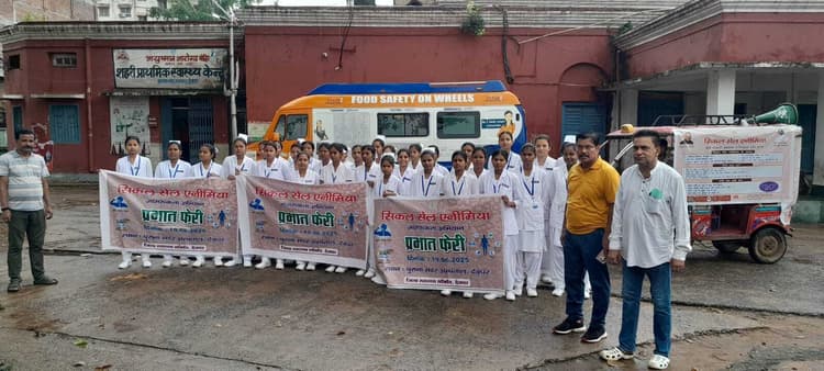 संवाददाता, देवघर : विश्व सिकल सेल एनीमिया दिवस के अवसर पर गुरुवार को स्वास्थ्य विभाग की ओर से विभिन्न कार्यक्रमों का आयोजन किया गया. पुराने सदर अस्पताल से प्रभात फेरी निकाली गयी, वहीं सदर अस्पताल के सभागार में कार्यशाला का आयोजन किया गया. साथ ही सिविल सर्जन द्वारा जागरुकता रथ को हरी झंडी दिखाकर रवाना किया गया, जो लोगों को सिकल सेल एनीमिया के प्रति जागरूक करेगा. गुरुवार की सुबह पुराना सदर अस्पताल से प्रभात फेरी को जिला कुष्ठ निवारण पदाधिकारी डॉ मनाेज कुमार गुप्ता ने हरी झंडी दिखा कर रवाना किया गया, इसके बाद प्रभात फेरी के माध्यम से एएनएम स्कूल के छात्राओं ने लोगों को सिकल सेल एनीमिया से बचाव के बारे में बताया. एनीमिया से बचाव के लिए जांच कराने को कहा गया. सिकल सेल एनीमिया से बचाव के लिए ज्यादा से ज्यादा पानी पियें सदर अस्पताल के सभागार में आयोजित कार्यशाला का उद्घाटन सिविल सर्जन डॉक्टर युगल किशोर चौधरी ने किया. उन्होंने कहा के सिकल सेल रोग अनुवांशिक होता है, इस रोग में सीधे खून की लाल रक्त कोशिकाओं (आरबीसी) को प्रभावित करती है. इस बीमारी में शरीर में आरबीसी की संख्या कम हो जाती है, जिससे शरीर के अंगों तक सही मात्रा में ऑक्सीजन नहीं पहुंच पाता. ऐसे में थकान, दर्द और कमजोरी जैसी परेशानियां हो सकती हैं. इसका समय पर इलाज नहीं होने पर जानलेवा भी हो सकता है. इससे बचाव के लिए ज्यादा से ज्यादा पानी पियें, फोलिक एसिड गोली लें, संपूर्ण संतुलित आहार लें तथा हर तीन माह में हीमोग्लोबिन की जांच करायें. इसके अलावा भी अन्य प्रकार की जानकारी दी. वहीं सदर अस्पताल परिसर से सिकल सेल जागरुकता रथ को सिविल सर्जन और एसीएमओ डॉ पीके शर्मा ने हरी झंडी दिखा कर रवाना किया. रथ के माध्यम से लोगों को जागरूक किया जायेगा. मौके पर अस्पताल उपाधीक्षक डॉ प्रभात रंजन, जिला वीवीडी पदाधिकारी डॉ अभय यादव, शिक्षा विभाग से सूरज श्रीवास्तव, डीपीएम समरेश सिंह, डीपीसी प्रवीण सिंह, राजेश राय, सुधांशु शेखर समेत सभी प्रखंड के बीटीटी व शहरी सहिया थे.