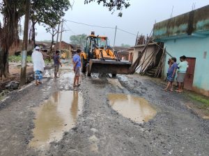 देवीपुर. देवीपुर-जमुआ मुख्य मार्ग अंतर्गत झूमरबाद गांव के पास ग्रामीण सड़क पूरी तरह से ध्वस्त हो गया था. हाइवा एवं ट्रक की वजह से सड़क काफी जर्जर हो गयी थी. साथ ही जगह-जगह जलजमाव व बड़े-बड़े गड्ढे बन गये थे. वहीं, सड़क मरम्मत के लिए शनिवार को ग्रामीणों ने घंटेभर तक रोड जाम भी किया था. इसकी सूचना पर पुलिस पहुंची थी. ग्रामीणों व राहगीरों की समस्या को देखते हुए पीडब्ल्यूडी विभाग की ओर से रविवार को बदहाल सड़क पर स्टोन डस्ट देकर जेसीबी से गड्ढे को भरकर प्लेन कर दिया गया, जिससे लोगों को आवागमन में परेशानी का सामना नहीं करना पड़े. इस संबंध में पीडब्ल्यूडी के सहायक अभियंता मुकेश कुमार सिंह ने कहा कि पानी निकासी नहीं रहने से बारिश का जल सड़क पर ही जमा रहता है. सिंह ने नाला निर्माण के लिए ग्रामीणों को आवेदन देने को कहा है. ताकि सड़क के किनारे पक्का नाला का निर्माण किया जायेगा. विदित हो कि इस मार्गों में बड़े-बड़े गड्ढे होने से ग्रामीणों का आवागमन दूभर हो गया. जबकि इससे प्रतिदिन बड़ी संख्या में छोटी-बड़ी गाड़ियों का आवागमन होता है.