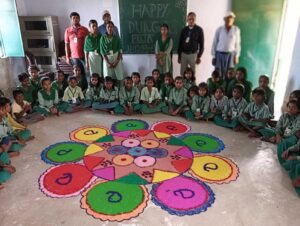 स्कूली छात्राओं ने बनायी आकर्षक रंगोली
