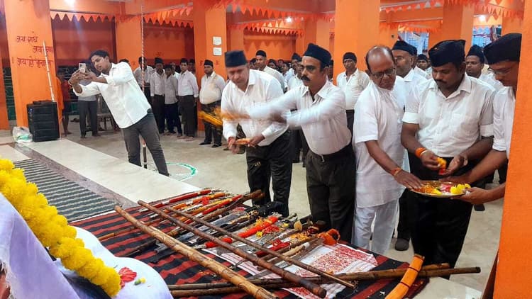 चितरा. राष्ट्रीय स्वयंसेवक संघ ने अपने शताब्दी वर्ष के अवसर पर चितरा कोलियरी में विजयादशमी उत्सव धूमधाम के साथ मनाया. साथ ही पथ संचलन कर पूरे चितरा का भ्रमण किया. इस दौरान तिवारी चौक पर स्कूली बच्चों ने पुष्प वर्षा कर स्वयंसेवकों का स्वागत किया. इसके बाद स्वयं सेवक चितरा स्थित शिव मंदिर प्रांगण में जमा हुए. जहां अतिथि विवेका नारायण देव, पूर्व मंत्री रणधीर सिंह समेत स्वयंसेवकों के द्वारा शस्त्र पूजन किया गया. साथ ही पारंपरिक गणवेश में एकत्र हुए और अनुशासन, संगठन तथा राष्ट्रभक्ति का अद्भुत प्रदर्शन किया. इसके पूर्व स्वयंसेवकों ने आकर्षक पथ संचलन कर संगठन की शक्ति और एकता का संदेश दिया. मंच से वक्ताओं ने संघ की शताब्दी यात्रा, राष्ट्र निर्माण में इसकी भूमिका और सामाजिक समरसता के महत्व पर प्रकाश डाला. वहीं, मुख्य वक्ता विजेंद्र जी ने कहा कि संघ शताब्दी वर्ष केवल संगठन की उपलब्धियों का उत्सव नहीं, बल्कि यह आने वाली पीढ़ियों के लिए प्रेरणा देने वाली है. उन्होंने राष्ट्रहित, संस्कृति संरक्षण और सामाजिक उत्थान के लिए निरंतर प्रयासरत रहने का आह्वान किया. वहीं, उत्सव का समापन राष्ट्रगीत और भारत माता की जय के नारों के साथ किया गया. मौके पर मुख्य अतिथि विवेका नारायण देव, मुख्य वक्ता विजेंद्र, विभाग प्रचारक देवघर डॉ गौरी शंकर, जिला सह संघ चालक राजेश, जिला कार्यवाह, विवेक, जिला प्रचार प्रमुख सपन, खंड कार्यवाह सारठ अमित, पूर्व विधायक रणधीर सिंह, राजेश सह खंड कार्यवाह अभिषेक, महेंद्र प्रसाद राणा, गुलशन सिंह, टिंकू सिंह, राजकुमार मेश्राम, मनोज चौधरी, संतोष तिवारी, वरुण सिंह, कपिलदेव मल्लिक आदि मौजूद थे. हाइलार्ट्स : चितरा में राष्ट्रीय स्वयंसेवक संघ का शताब्दी वर्ष सह विजयादशमी उत्सव धूमधाम से संपन्न