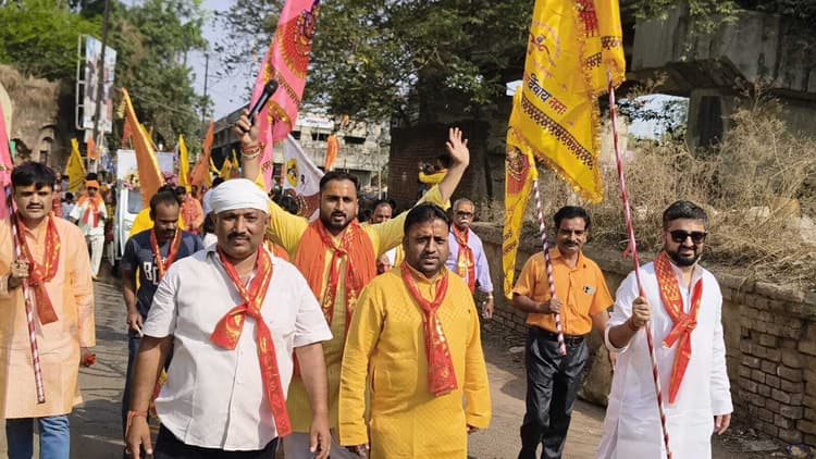 मधुपुर. कुंडू बंगला स्थित नवनिर्मित श्री पवन पुत्र धाम मंदिर में हनुमान जी की प्रतिमा की प्राण-प्रतिष्ठा को लेकर भव्य कलश शोभा यात्रा निकाली गयी. कलश शोभा यात्रा राम मंदिर ठाकुरबाड़ी परिसर से प्रारंभ हुई, जिसमें 301 महिलाएं और कुंवारी कन्याएं कलश जल यात्रा में शामिल हुईं. श्रद्धालुओं का उत्साह देखते ही बन रहा था. शोभा यात्रा शहर के विभिन्न मार्गों से होकर गुजरते हुए पवन पुत्र धाम मंदिर पहुंची, जहां पूरे विधि-विधान से धार्मिक अनुष्ठान संपन्न कराया गया. इस अवसर पर आचार्य बलदेव पांडेय, आचार्य अशोक पांडेय, वरुण पांडेय, दिनेश पांडेय और संजीत पांडेय की उपस्थिति में मुख्य यजमान अनिल कुशवाहा और उनकी पत्नी आशा कुशवाहा ने पंचांग पूजन, वेदी पूजन तथा वैदिक मंत्रोच्चारण के बीच वीर हनुमान जी की प्रतिमा का जलाधिवास कराया. पूरा वातावरण भक्तिमय हो गया और श्रद्धालु भक्ति में लीन नजर आये. तीन दिवसीय अनुष्ठान के अंतिम दिन गुरुवार को प्रतिमा की प्राण-प्रतिष्ठा की जायेगी. इसके साथ ही भंडारे का आयोजन भी किया जाएगा, जिसमें बड़ी संख्या में श्रद्धालुओं के शामिल होने की उम्मीद है. संध्या समय कोलकाता से आए गायकों द्वारा भजन संध्या का कार्यक्रम प्रस्तुत किया जाएगा, जिससे धार्मिक माहौल और अधिक आनंदमय हो उठेगा. साथ ही आसपास का क्षेत्र पूरी तरह भक्तिमय वातावरण में डूबा हुआ है. हाइलार्ट्स : मधुपुर में नवनिर्मित श्री पवन पुत्र धाम मंदिर में धार्मिक अनुष्ठान आयोजित अनुष्ठान को लेकर भक्ति में लीन नजर आये श्रद्धालु