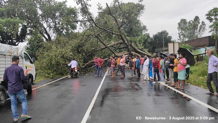 प्रतिनिधि, मोहनपुर : देवघर-गोड्डा मुख्य पथ पर रविवार की शाम जमुनिया गांव के पास सड़क किनारे स्थित एक विशाल बरगद का पेड़ अचानक गिर गया. इस कारण मुख्य पथ पर एक घंटे से समय तक आवागमन पूरी तरह बाधित रहा. सड़क के दोनों ओर वाहनों की लंबी कतार लग गयी. खासकर कांवरियों की बसों और वाहनों की भीड़ लगने से अफरा-तफरी मच गयी. घटना की सूचना मिलते ही मोहनपुर थाना प्रभारी प्रियरंजन कुमार, एसआइ मनेन्द्र कुमार और एएसआइ मुकेश कुमार दल-बल के साथ मौके पर पहुंचे. साथ ही जिला परिषद अध्यक्ष किरण कुमारी, झामुमो प्रखंड अध्यक्ष सुनील कुमार मंडल, युवा नेता श्रीकांत प्रसाद यादव, राजद नेता पुरुषोत्तम यादव, वीरू यादव, केदार दास, सिकंदर राव, पूर्व मुखिया सुरेंद्र यादव, ऋषिदेव यादव और दीपक यादव ने मानवता का परिचय देते हुए पेड़ की डालियों को हटाने में सहयोग किया. करीब एक घंटे की मशक्कत के बाद पेड़ की शाखाओं को जेसीबी से हटाकर सड़क को साफ किया गया. इसके बाद आवागमन पुनः सामान्य हो सका. गनीमत रही कि इस घटना में कोई हताहत नहीं हुआ है. बरसात के मौसम में अक्सर पुराने पेड़ गिरने का खतरा बना रहता है. इस मार्ग से प्रतिदिन बड़ी संख्या में कांवरिये देवघर से बासुकीनाथ की ओर जाते हैं. स्थानीय लोगों ने प्रशासन से आग्रह किया है कि मार्ग किनारे स्थित सूखे और झुके हुए पेड़ों की जांच कर समय रहते हटाया जाये, ताकि भविष्य में इस तरह की परेशानी नहीं हो.