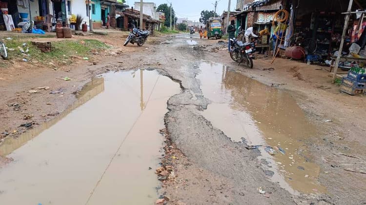 प्रतिनिधि, देवीपुर देवघर विधानसभा क्षेत्र अंतर्गत मनियारपुर से लालोडीह मुख्य सड़क जर्जर रहने के कारण लोगों को खासा परेशानी का सामना करना पड़ रहा है. ग्रामीणों की मानें तो बिहार को जोड़ने वाली यह मुख्य सड़क लगभग 20 वर्ष पूर्व बनवायी गयी थी. इसके बाद अब तक इसकी मरम्मत नहीं हुई. स्थानीय जनप्रतिनिधि भी इसे लेकर उदासीन बने हुए हैं. इस सड़क की मरम्मत के लिए ग्रामीणों ने कई बार अपनी आवाज को बुलंद की है. पर अबतक कुछ नहीं हुआ. फिलहाल सड़क की जो स्थिति है. वह विकास के इस दौर में व्यवस्था को मुंह चिढ़ाती प्रतीत होती है. इससे वाहनों का तो दूर पैदल चलना भी मुश्किल है. दरअसल, नाला के अभाव में घरों का पानी भी बीच सड़क पर बह रहा है. जानकारी हो कि सड़क मरम्मत के लिए ग्रामीणों एवं राहगीरों ने अनेकों बार जन प्रतिनिधि से लेकर अधिकारी तक सड़क मरम्मत करने के लिए गुहार लगा चुके है. मगर समस्या जस की तस बनी हुई है. स्थानीय लोगों की मानें तो दर्जनों लोग सड़क पर बने गड्ढे में गिरकर चोटिल हो चुके हैं. ग्रामीणों ने विधायक सुरेश पासवान से सड़क निर्माण कराने की मांग की है. ————————- परेशानी: मरम्मत के अभाव में मानियारपुर से लालोड़ीह चौक तक सड़क जर्जर