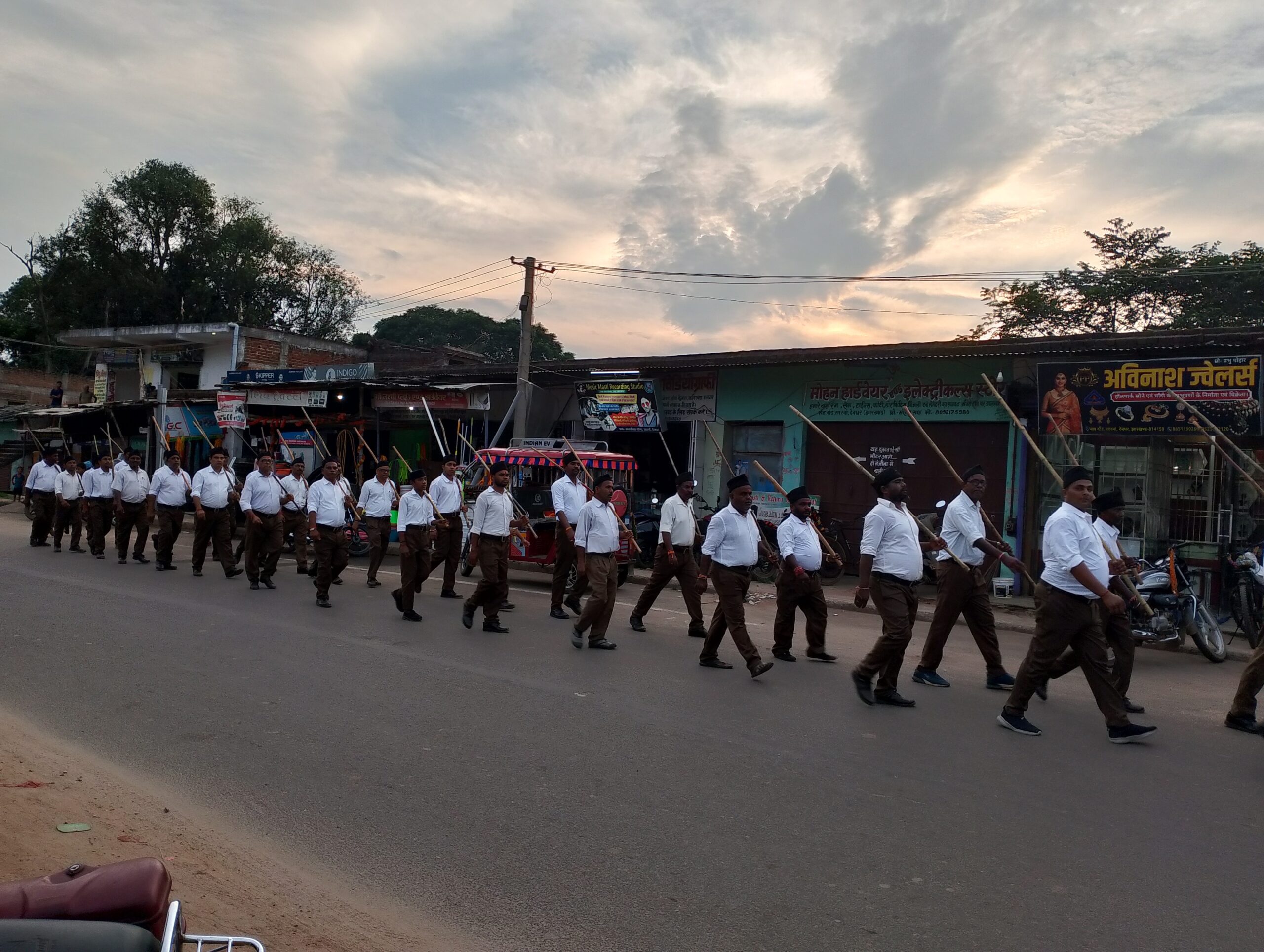 सारवां. राष्ट्रीय स्वयंसेवक संघ (आरएसएस) के शताब्दी वर्ष पूरे होने के अवसर पर प्लस टू विद्यालय सारवां प्रांगण में संघ के स्वयंसेवकों द्वारा विशेष कार्यक्रम का आयोजन हुआ. इस दौरान प्रखंड कार्यवाह संजय राय के नेतृत्व में पद संचलन सह शस्त्र पूजन कार्यक्रम का आयोजन किया गया. वहीं, ग्राम विकास संयोजक रांची के महेंद्र प्रसाद, जिला प्रचारक नीरज की देखरेख में मंझीलाडीह, गोलाबाजार, भंडारो, पांचूडीह, बस स्टैंड, महतोडीह मोड़ आदि मोहल्लों में पद संचालन कर राष्ट्र भक्ति का संदेश दिया. मौके पर डाॅ अजय कुमार सिंह, सुधीर कुमार, दिलीप पांडे, अनिल वर्मा, बीरेंद्र पांडे, रामप्रसाद हांसदा, सीताराम हाजरा, बलराम पोद्दार, श्रीकांत वर्मा, निवास कुमार, राजेश कुमार सिंह, जियानाग, मदन प्रसाद राय आदि कार्यवाह मौजूद थे.